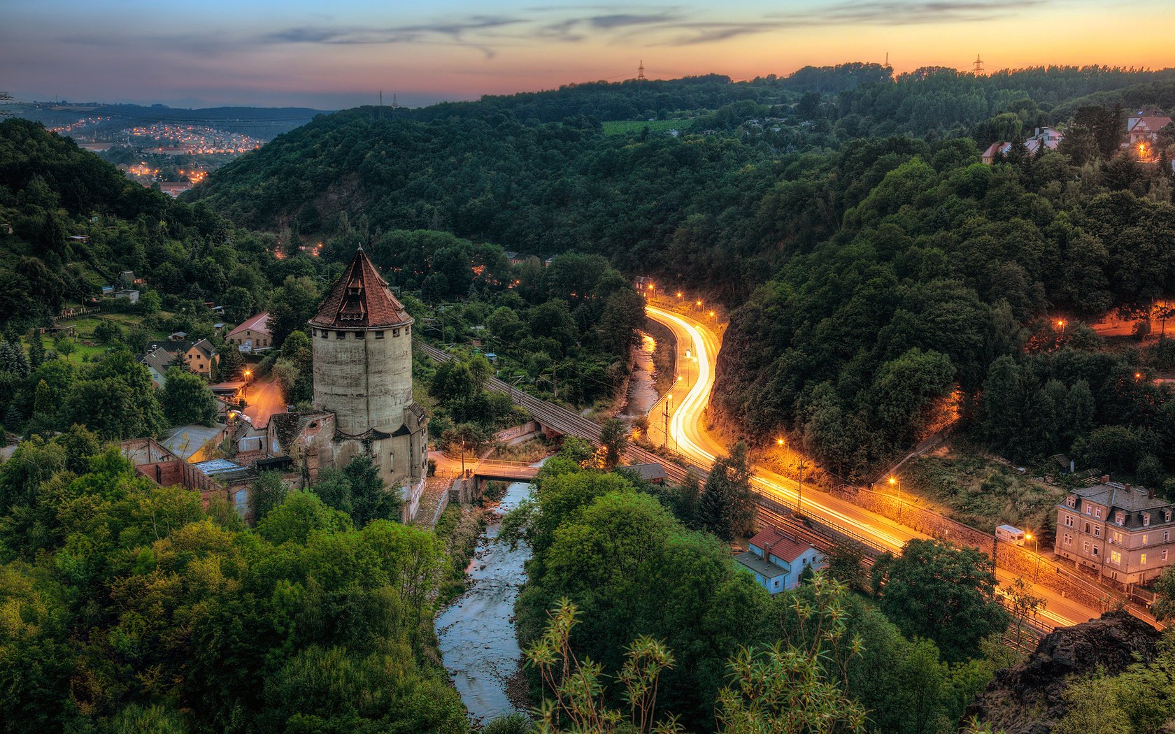 Brücke in deutschland bei rosa sonnenuntergang aus der höheBrücke in Deutschland bei rosa Sonnenuntergang aus der Höhe