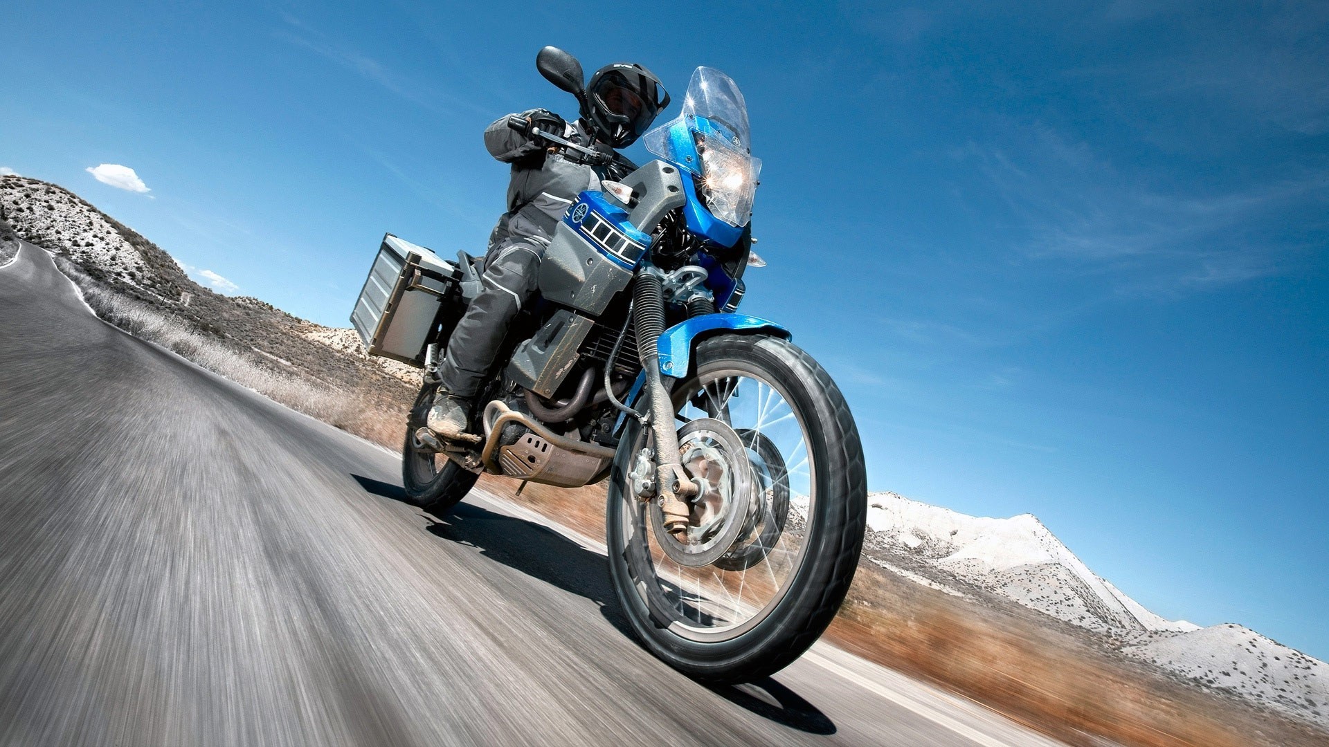 Ein steiler Biker gewinnt an Geschwindigkeit auf einem Motorrad