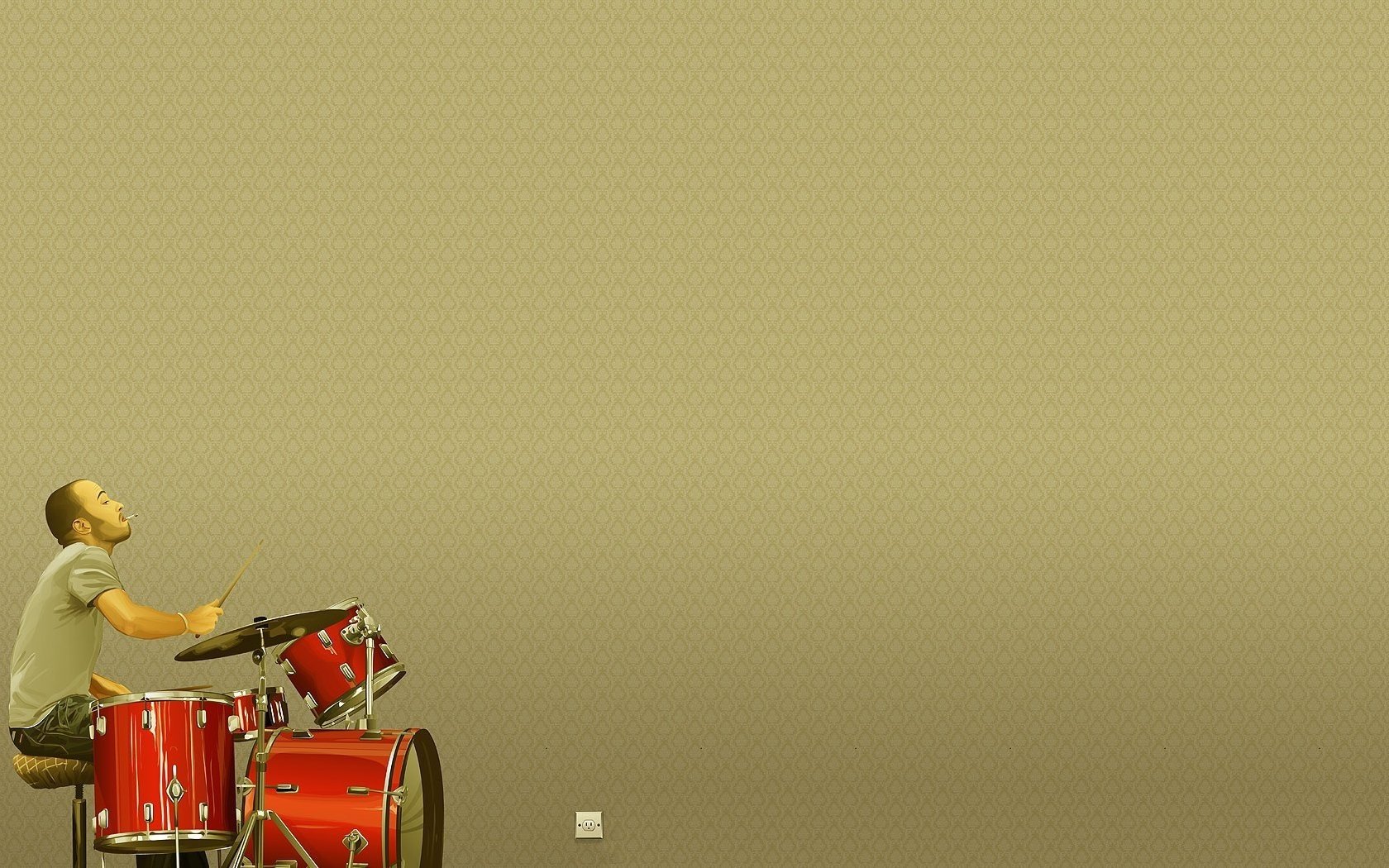Schlagzeuger mit trommeln auf einem einfarbigen hintergrundSchlagzeuger mit Trommeln auf einem einfarbigen Hintergrund