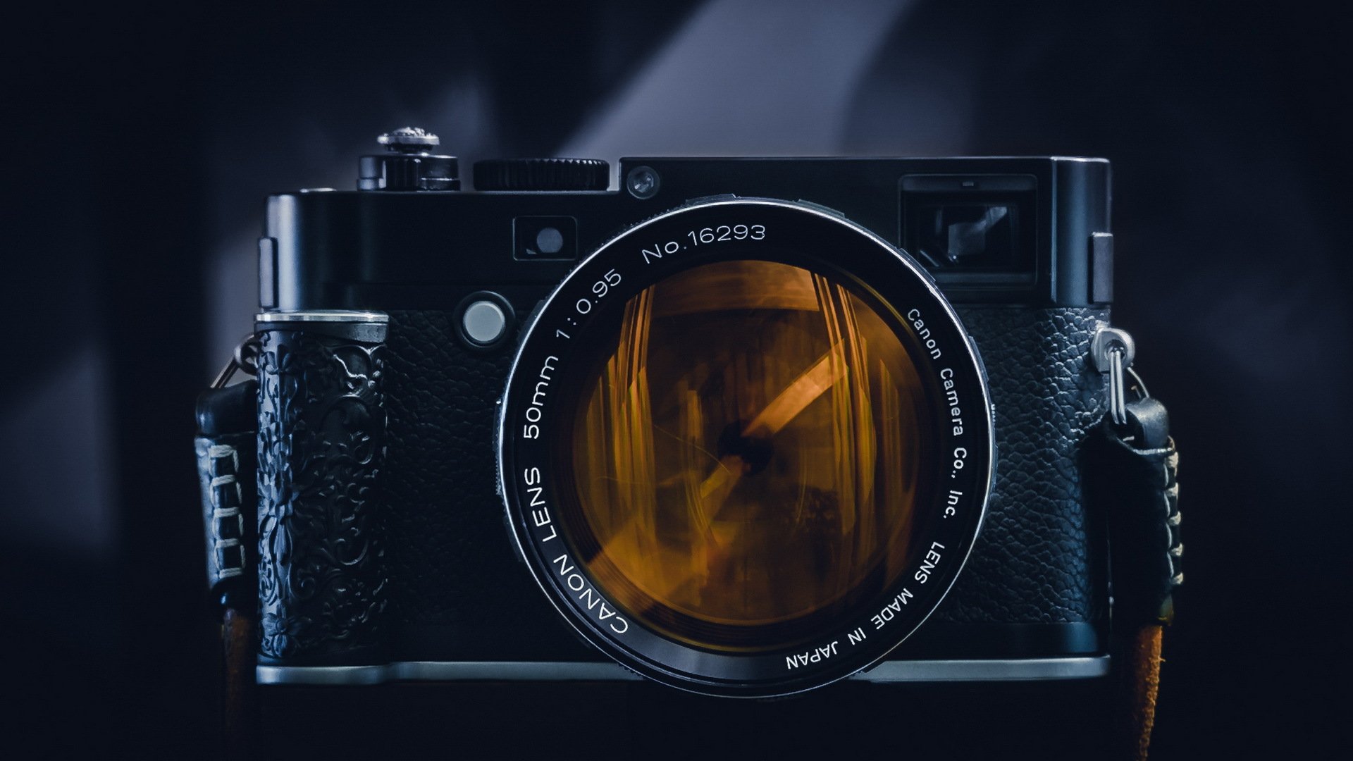 Kamera-Kamera auf einem Tisch in einem dunklen Raum