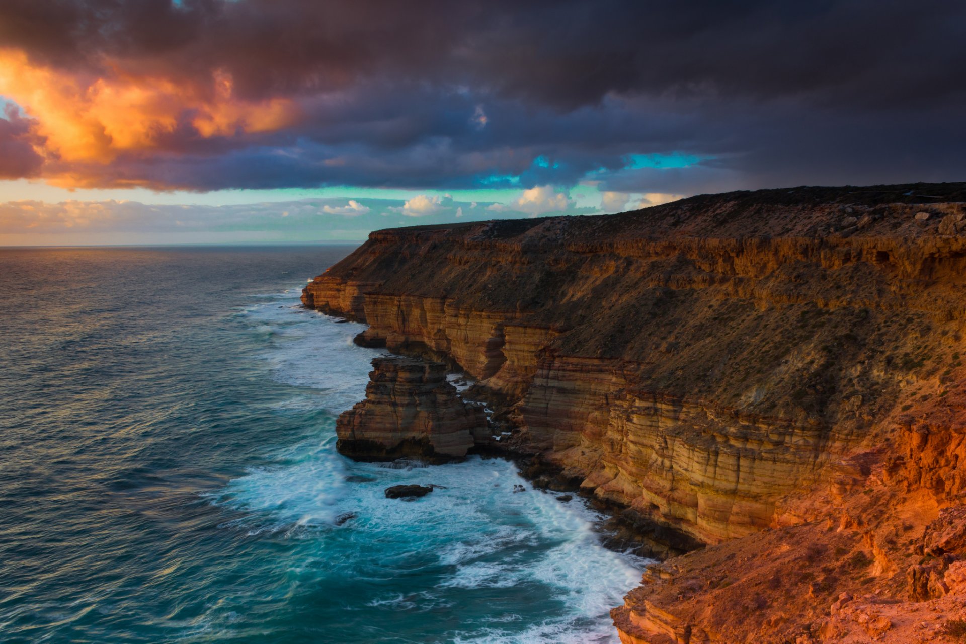 Sonnenuntergang vor dem hintergrund des meeres und der felsenSonnenuntergang vor dem Hintergrund des Meeres und der Felsen