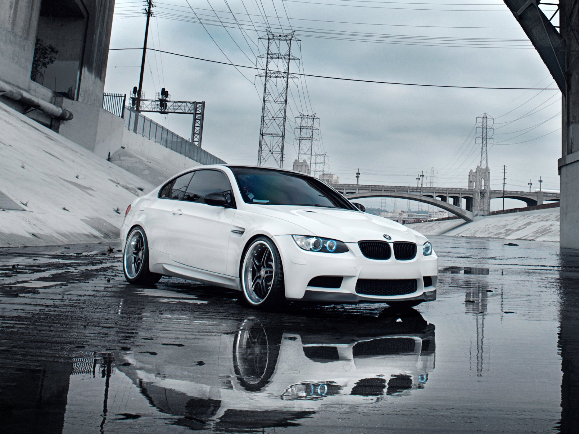 Foto von bmw mit hintergrund auf der brücke