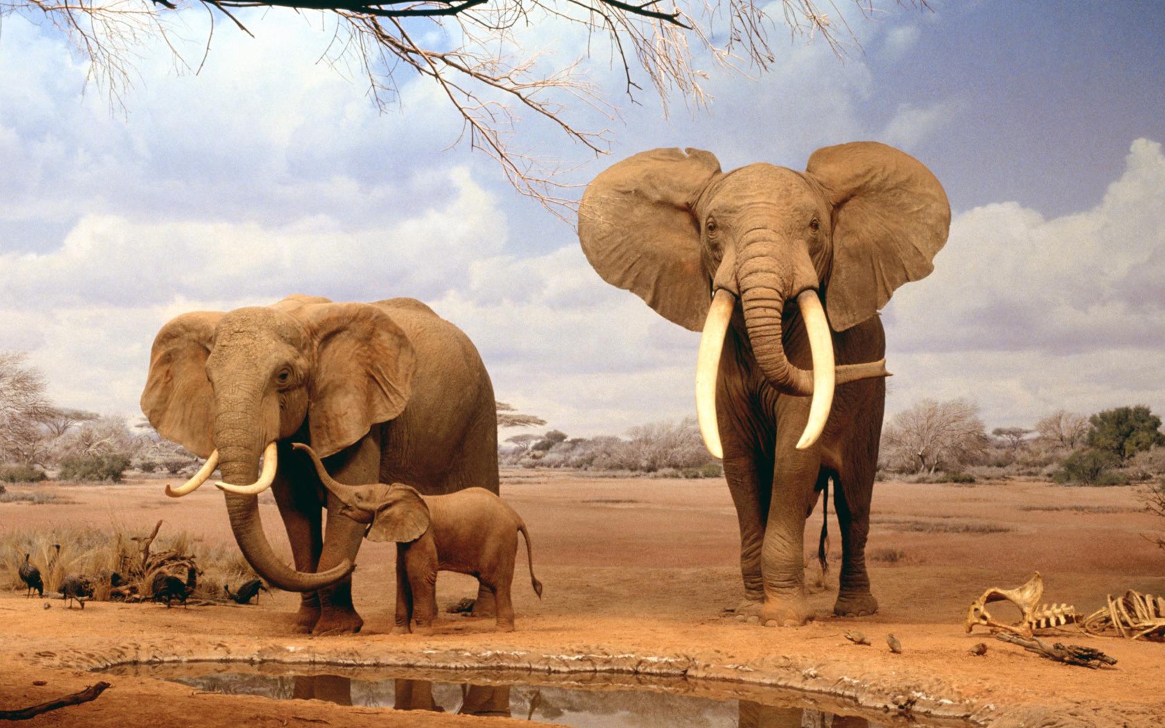 Zwei elefanten und ein elefantenbaby in afrika in freier wildbahnZwei Elefanten und ein Elefantenbaby in Afrika in freier Wildbahn