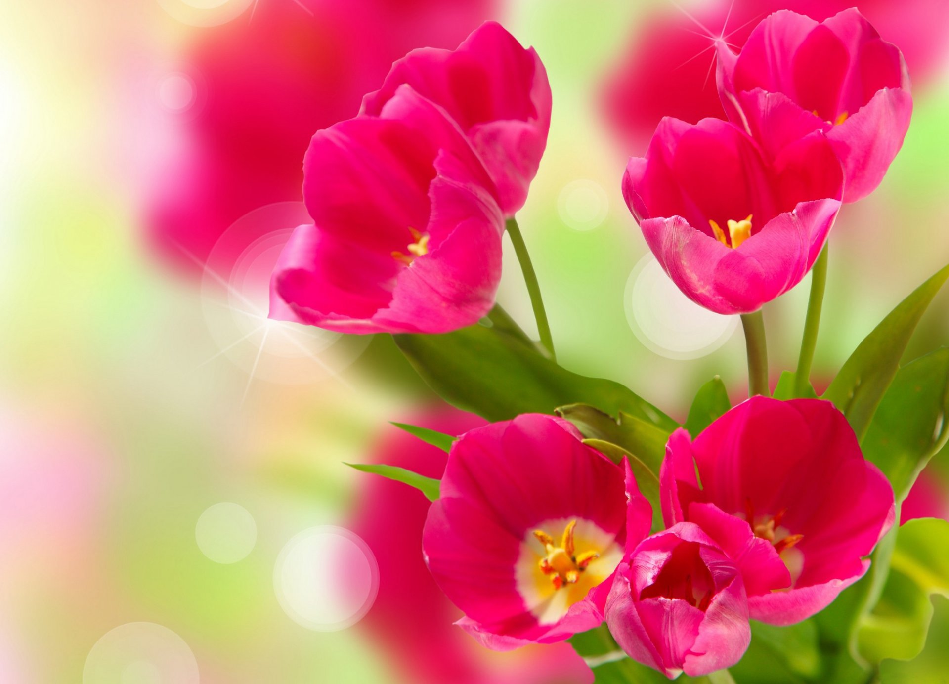 Tulpen mit weißer mitte auf einem verschwommenen grün-rosa hintergrundTulpen mit weißer Mitte auf einem verschwommenen grün-rosa Hintergrund