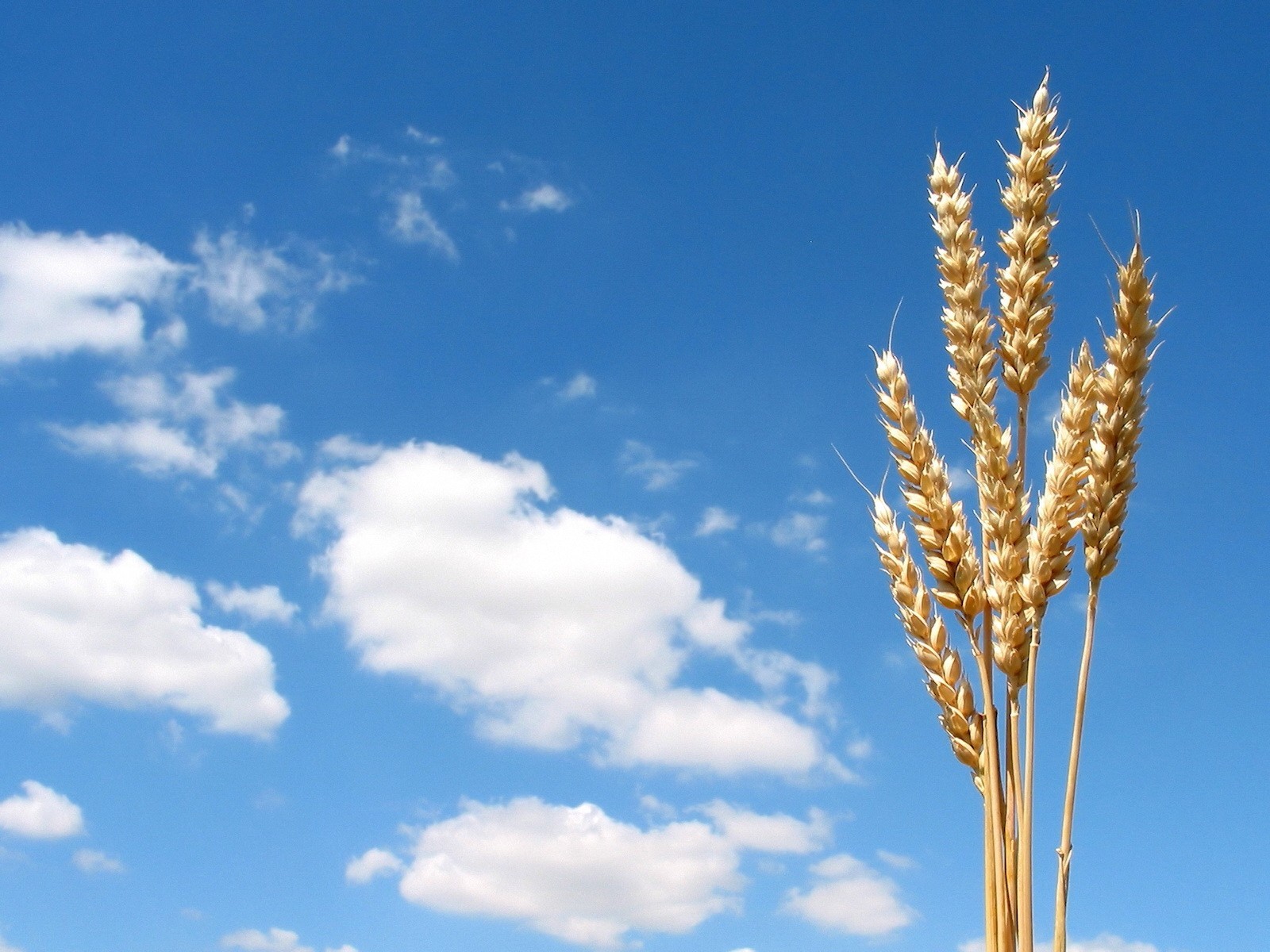 Goldene ähren auf einem blauen himmelshintergrund mit wolkenGoldene Ähren auf einem blauen Himmelshintergrund mit Wolken