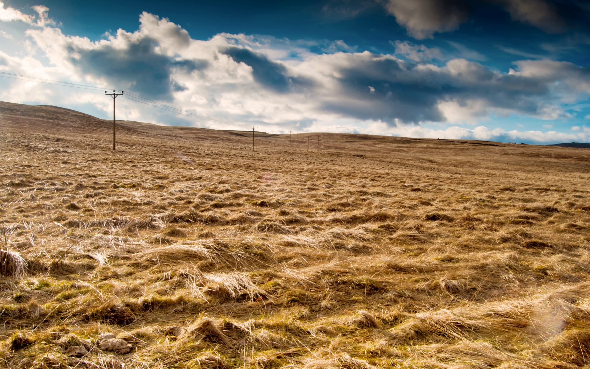 Feld mit einer windmühle vor dem hintergrund der schicken wolkenFeld mit einer Windmühle vor dem Hintergrund der schicken Wolken