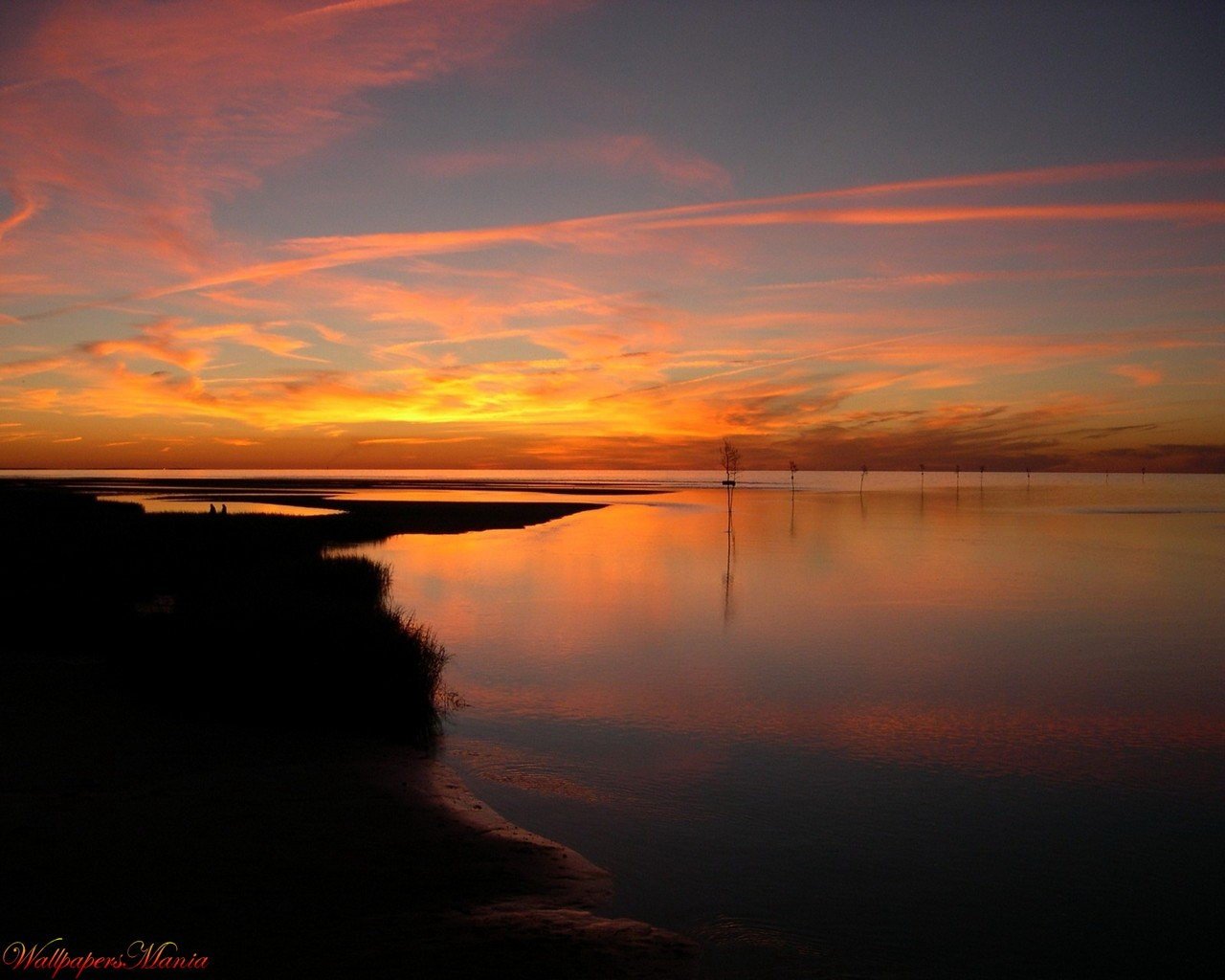 Sonnenuntergang vor einbruch der nacht über dem seeSonnenuntergang vor Einbruch der Nacht über dem See