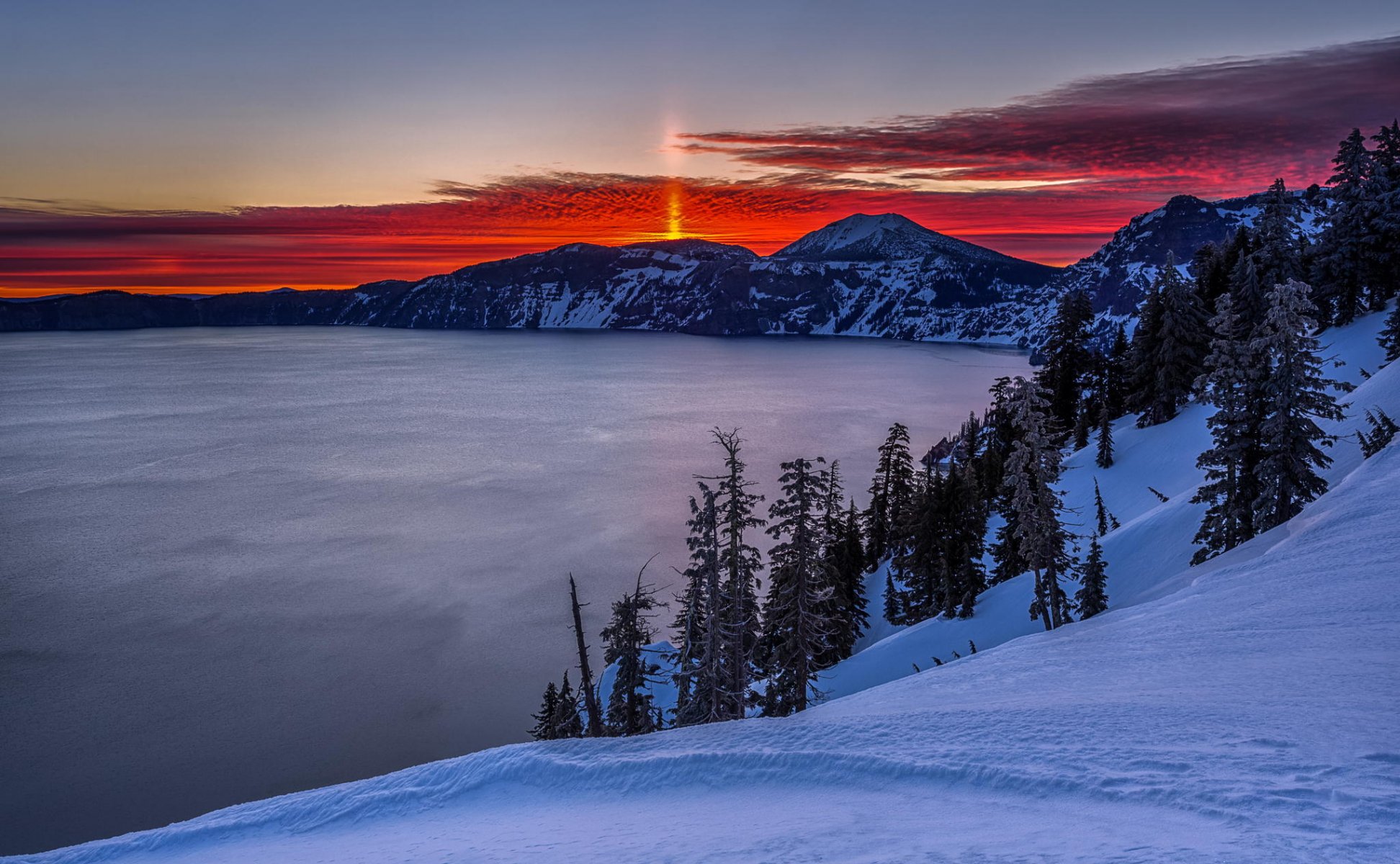 Winterlandschaft: Berge und See