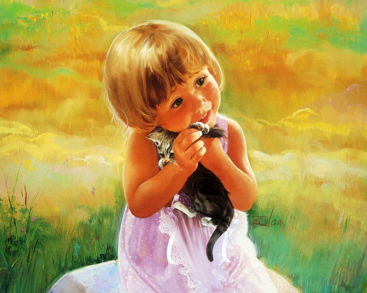 Bild eines niedlichen mädchens mit einem kleinen kätzchenBild eines niedlichen Mädchens mit einem kleinen Kätzchen