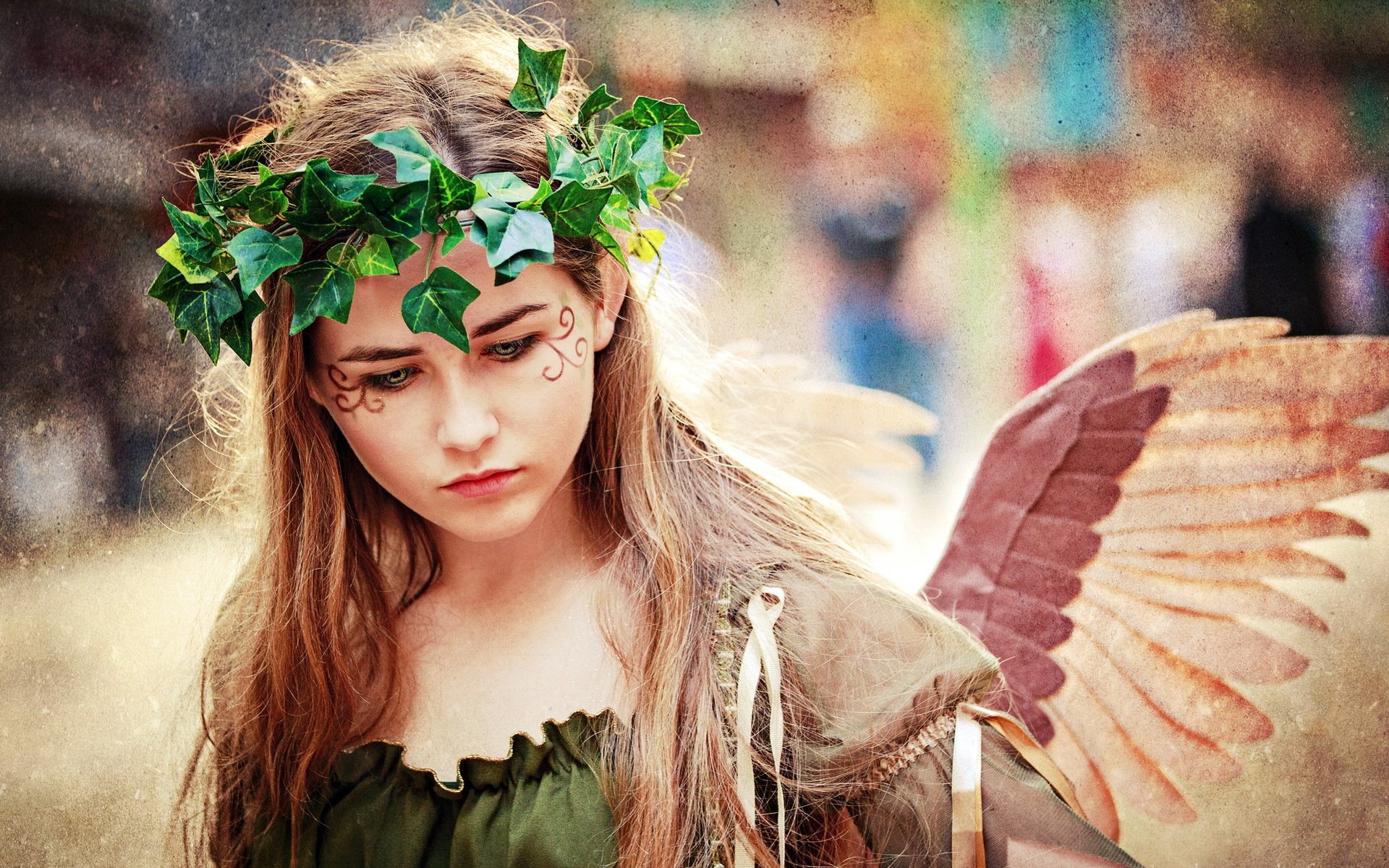 Mädchen mit Flügeln und grünem Kranz