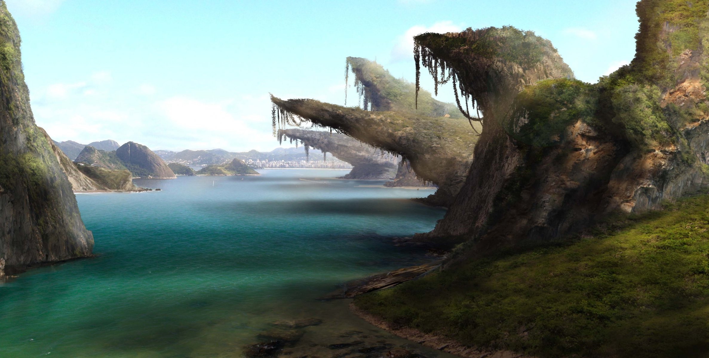 Die freundschaft des smaragdgrünen meeres und der grünen felsenDie Freundschaft des smaragdgrünen Meeres und der grünen Felsen