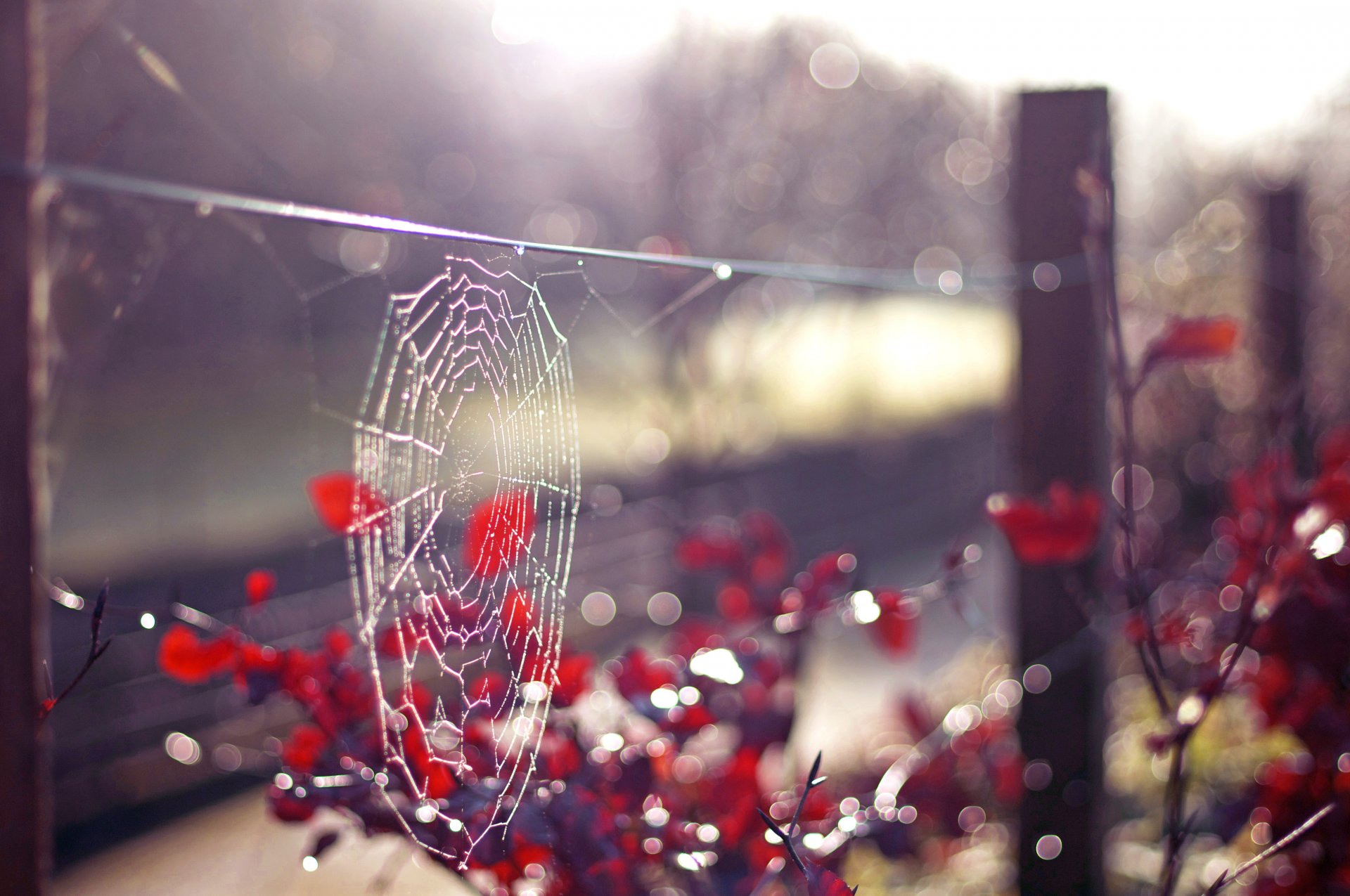 Nahaufnahme eines spinnennetzes an einem sommertagNahaufnahme eines Spinnennetzes an einem Sommertag