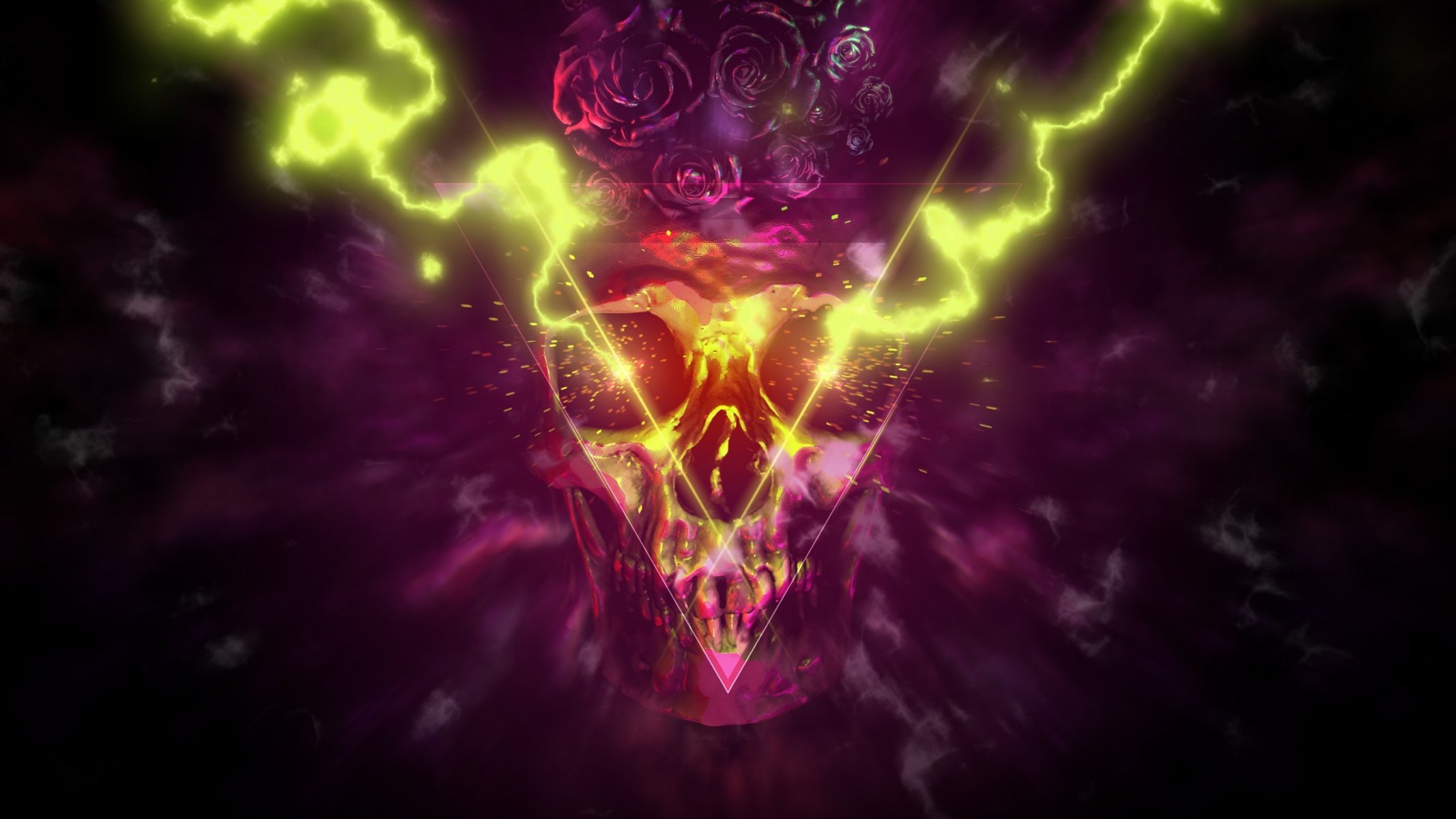 Grüner schädel auf lila hintergrund. rosen im schädelGrüner Schädel auf lila Hintergrund. Rosen im Schädel