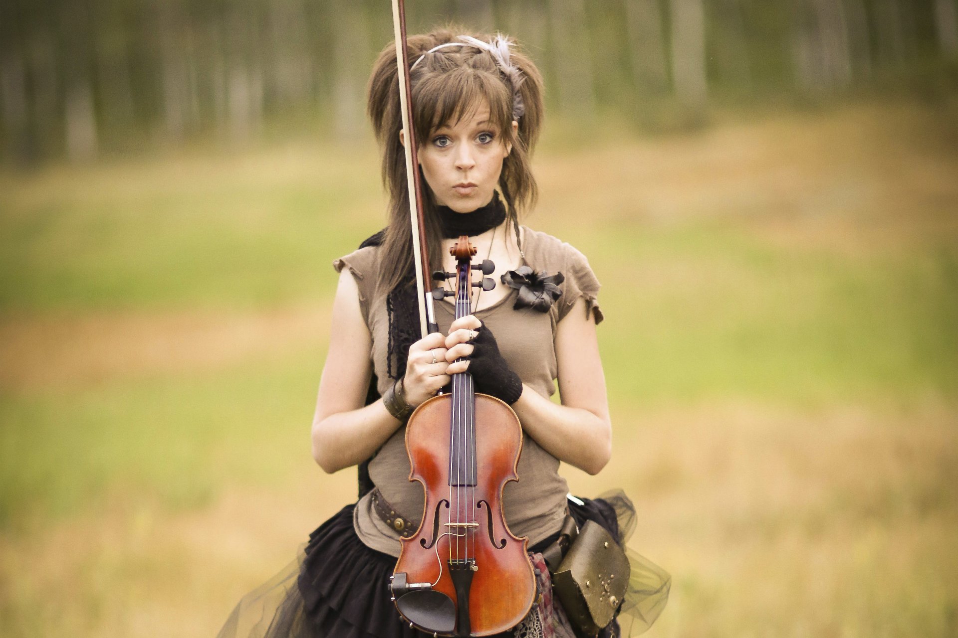 Geigerin Mädchen bei Sonnenuntergang im Feld