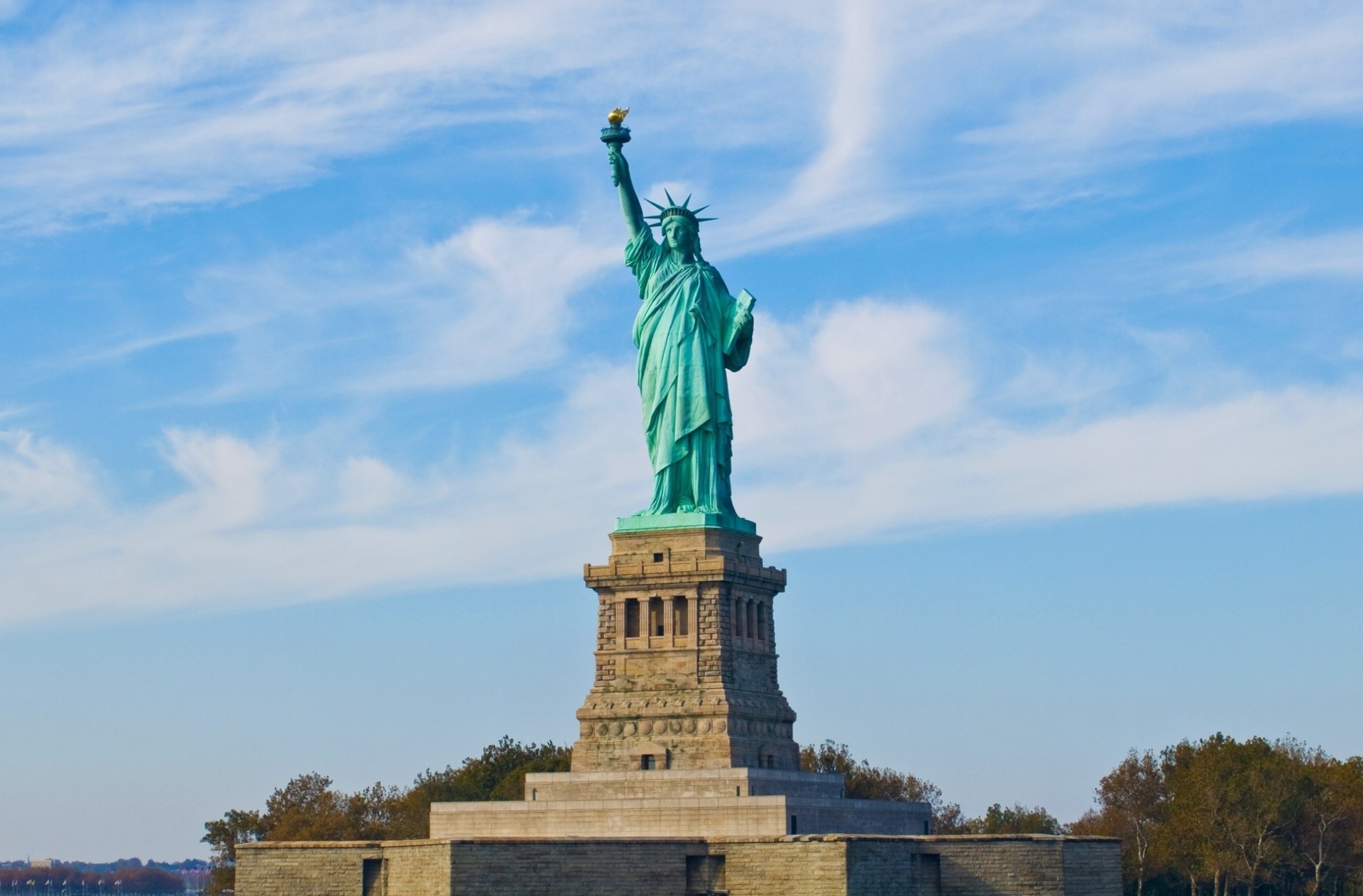 Freiheitsstatue am Nachmittag auf Himmelshintergrund
