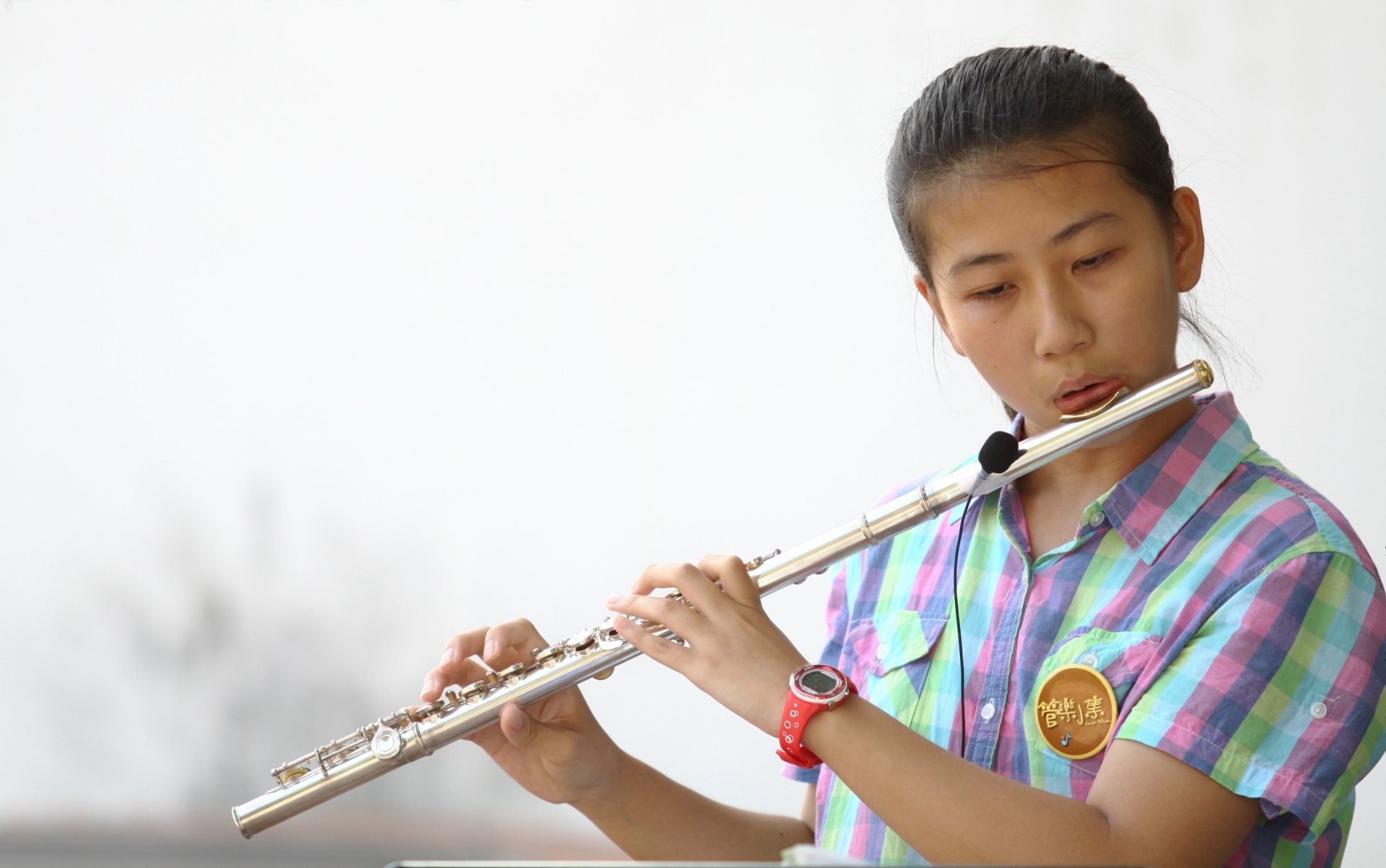 Ein Mädchen in einer Lederjacke singt unter der Gitarre