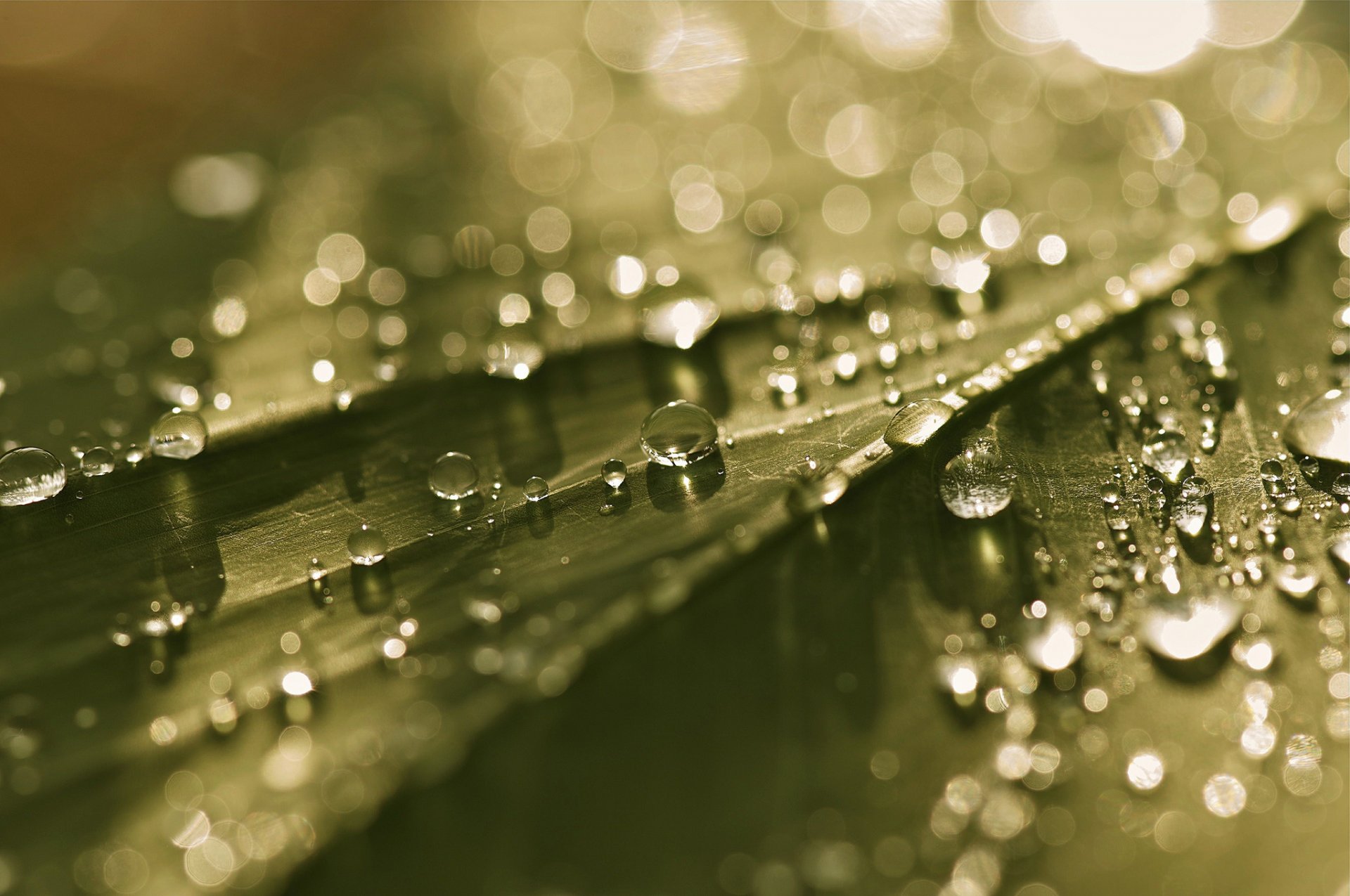Makroaufnahme eines Blattes mit Tautropfen