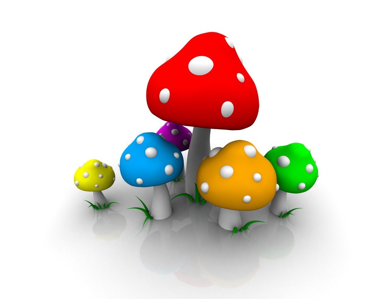 Pilze auf langen, dünnen beinen wachsen auf einer sonnigen, grünen waldlichtungPilze auf langen, dünnen Beinen wachsen auf einer sonnigen, grünen Waldlichtung