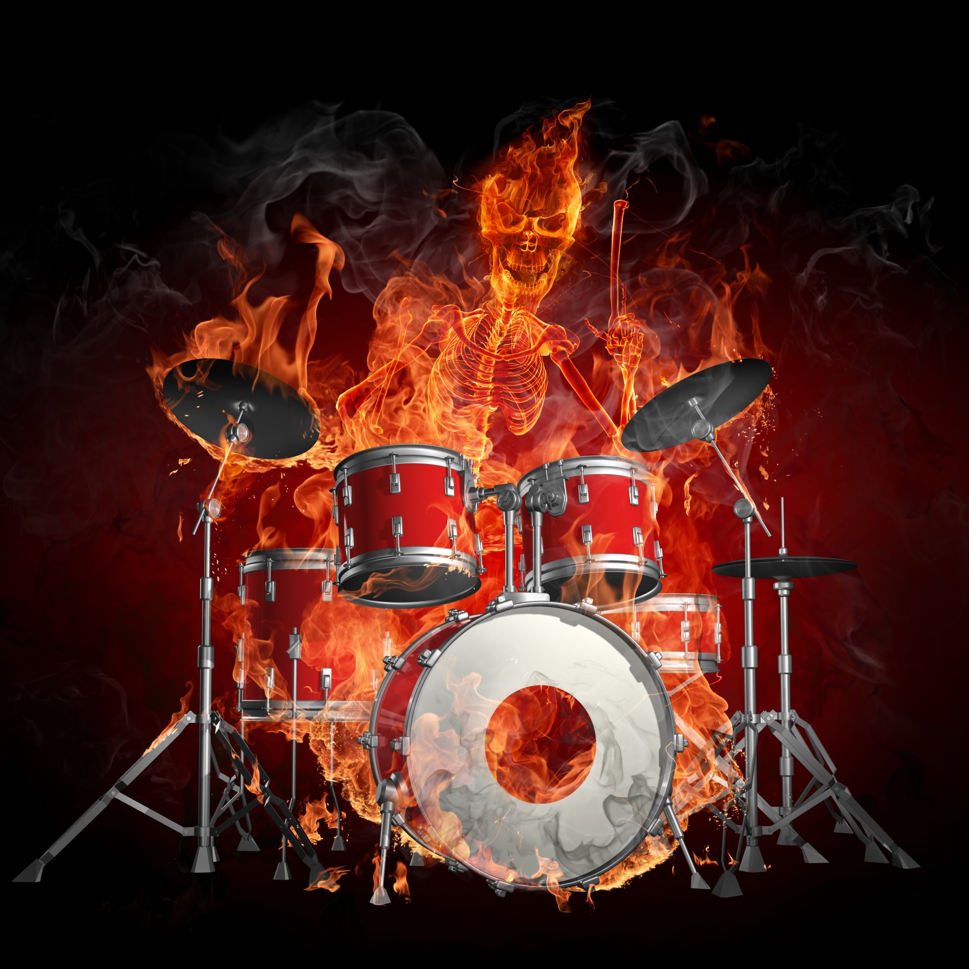 Das feurige Skelett spielt Schlagzeug
