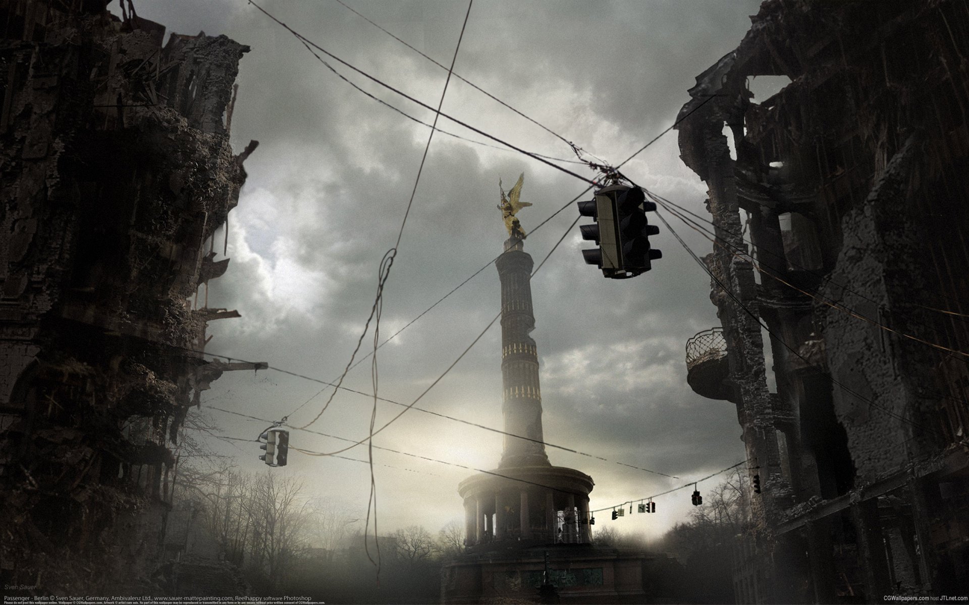 Ein schwarzer panther sitzt in trümmern auf einer treppeEin schwarzer Panther sitzt in Trümmern auf einer Treppe