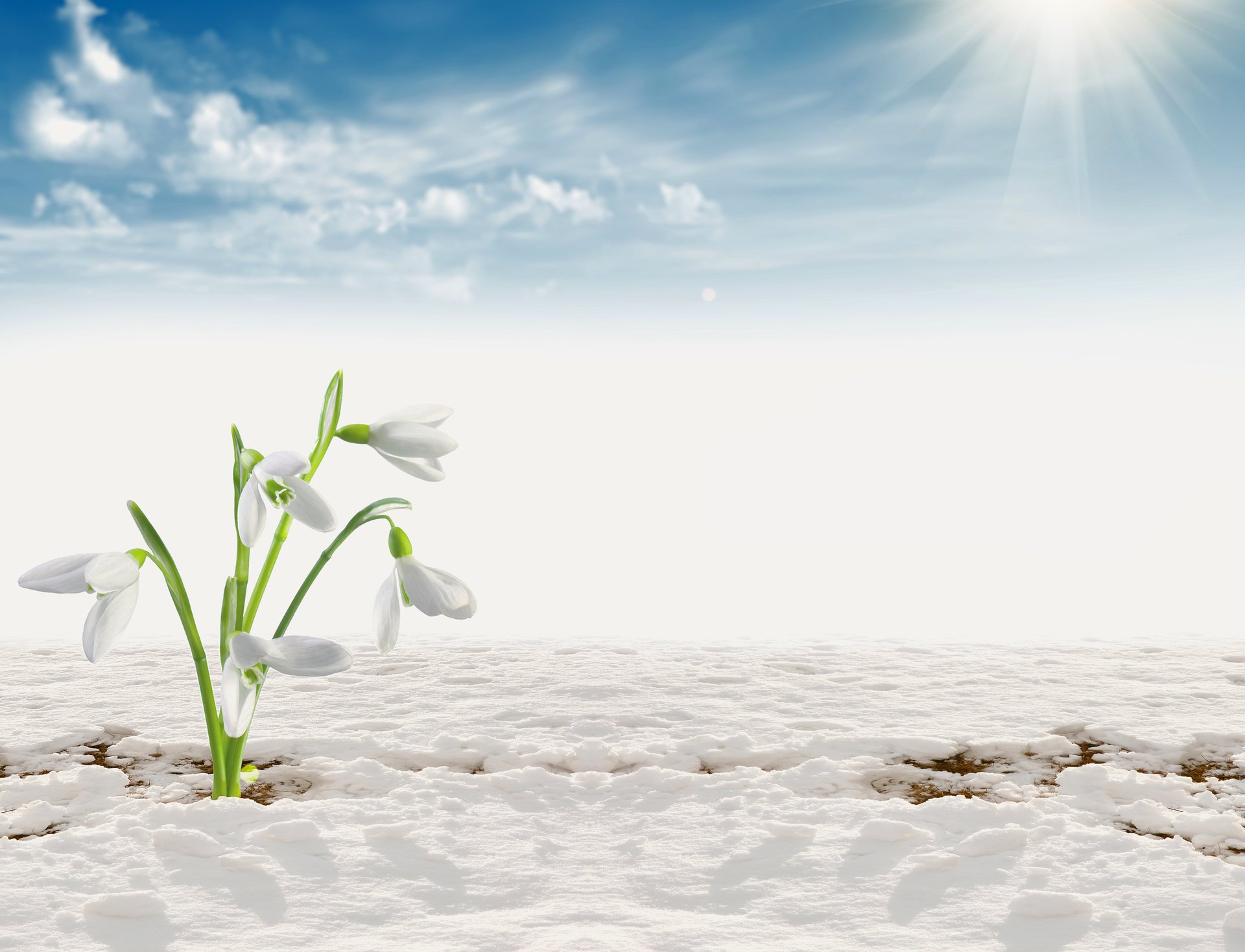 Schneeglöckchen auf schnee auf bewölktem himmel hintergrundSchneeglöckchen auf Schnee auf bewölktem Himmel Hintergrund