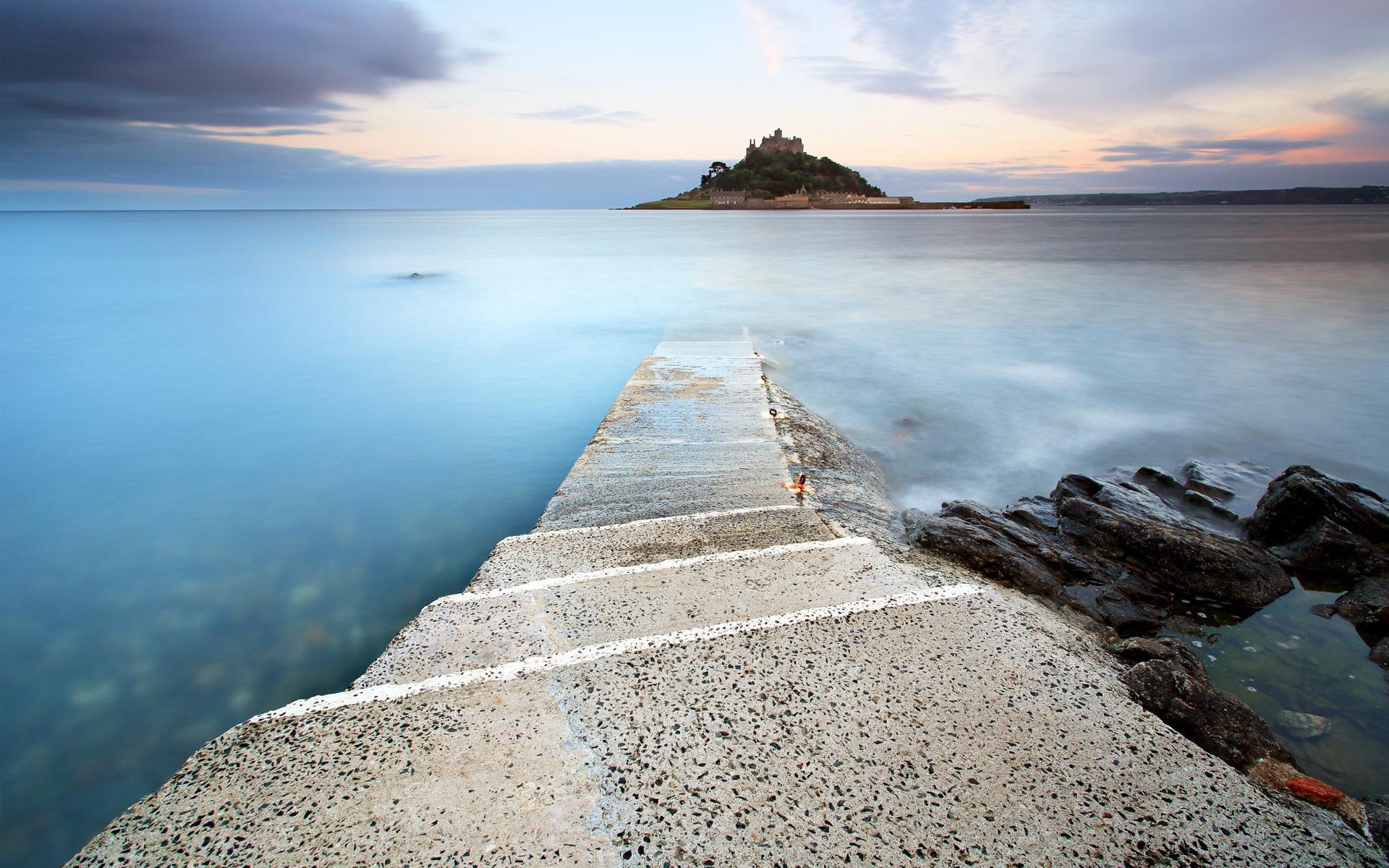 Steinstraße, die zum blauen meer und zum schönen sonnenuntergang führtSteinstraße, die zum blauen Meer und zum schönen Sonnenuntergang führt