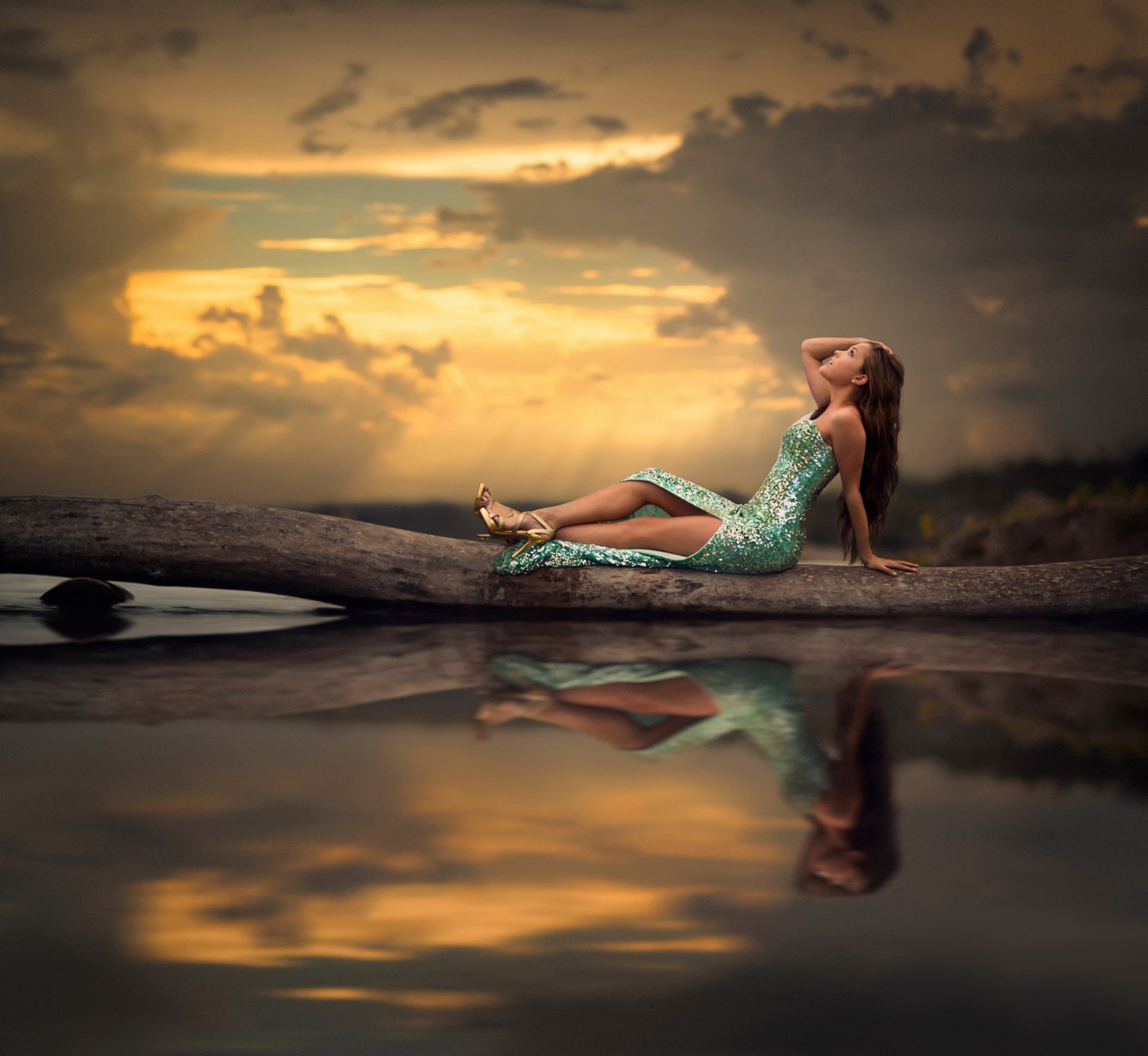 Langbeinige ana beatrice barros am ufer der laguneLangbeinige Ana Beatrice Barros am Ufer der Lagune