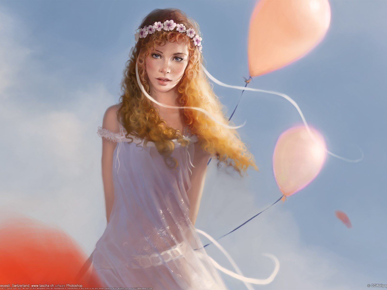Mädchen mit Hut auf dem Hintergrund der schwarzen Kugeln