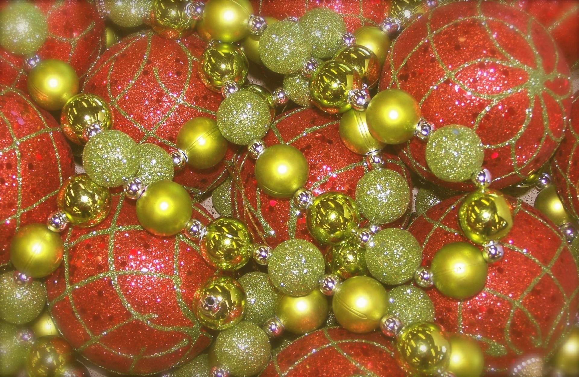 Weihnachtskugeln, Kerzen, Girlanden