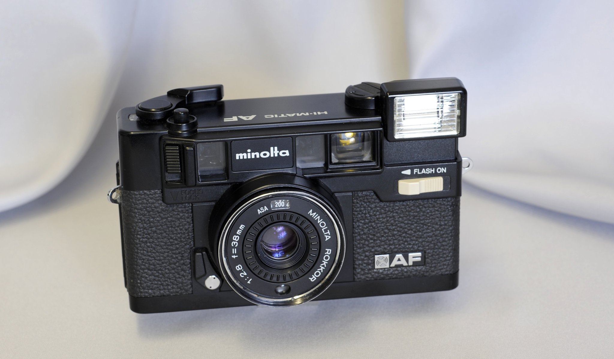 Makrofoto einer alten Kamera auf dunklem Hintergrund