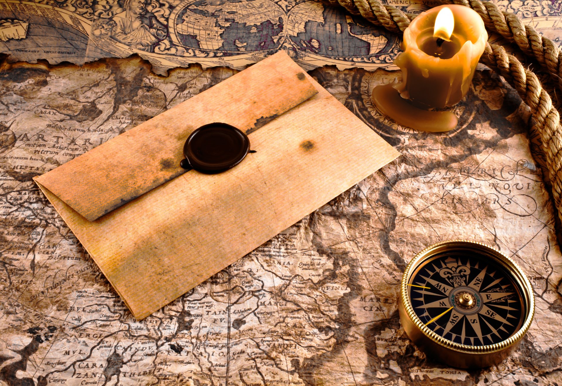 Auf der Karte befindet sich ein Umschlag mit einem Kompass