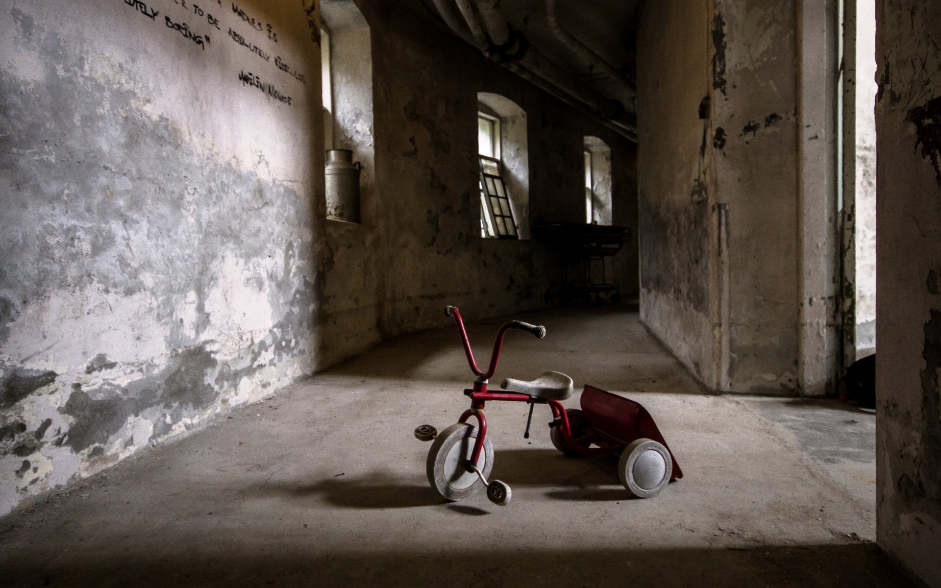 KONZEPTIONELLES SILBERNES FAHRRAD AUF SCHWARZEM HINTERGRUND