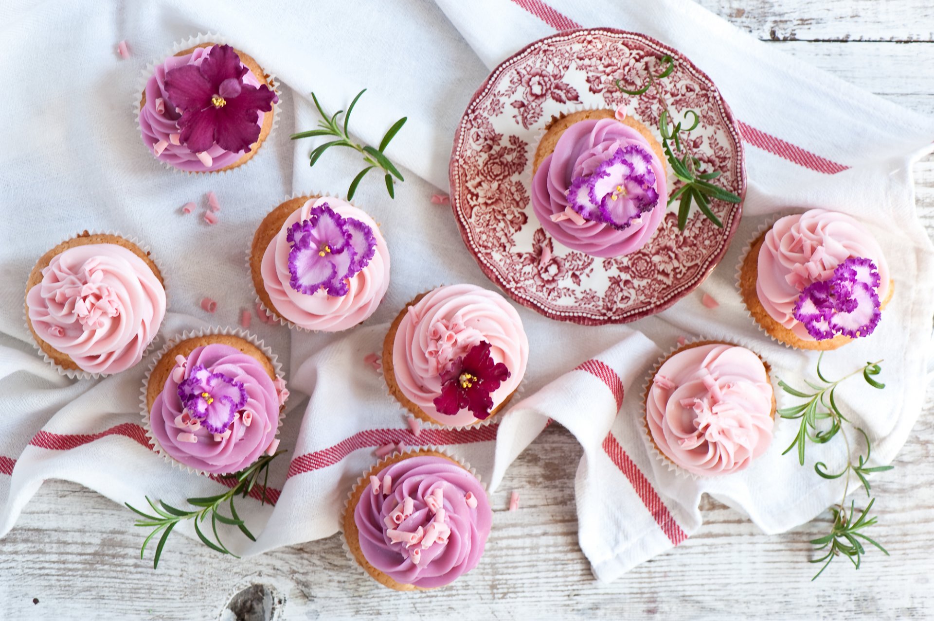 Tablett mit schönen Muffins, Gebäck mit Blaubeeren
