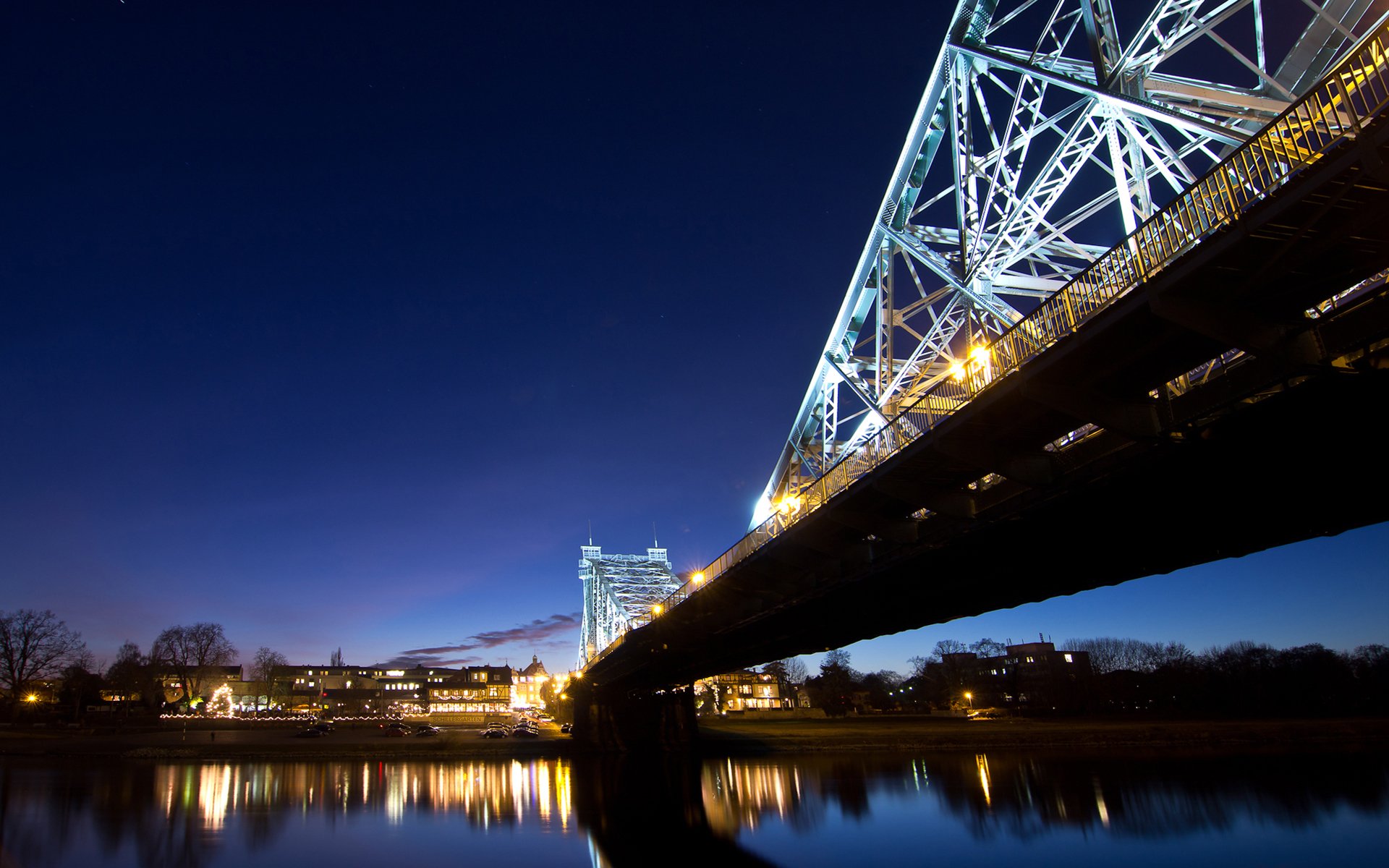 Fliegen über Nachtwolken und Blick auf die Stadt