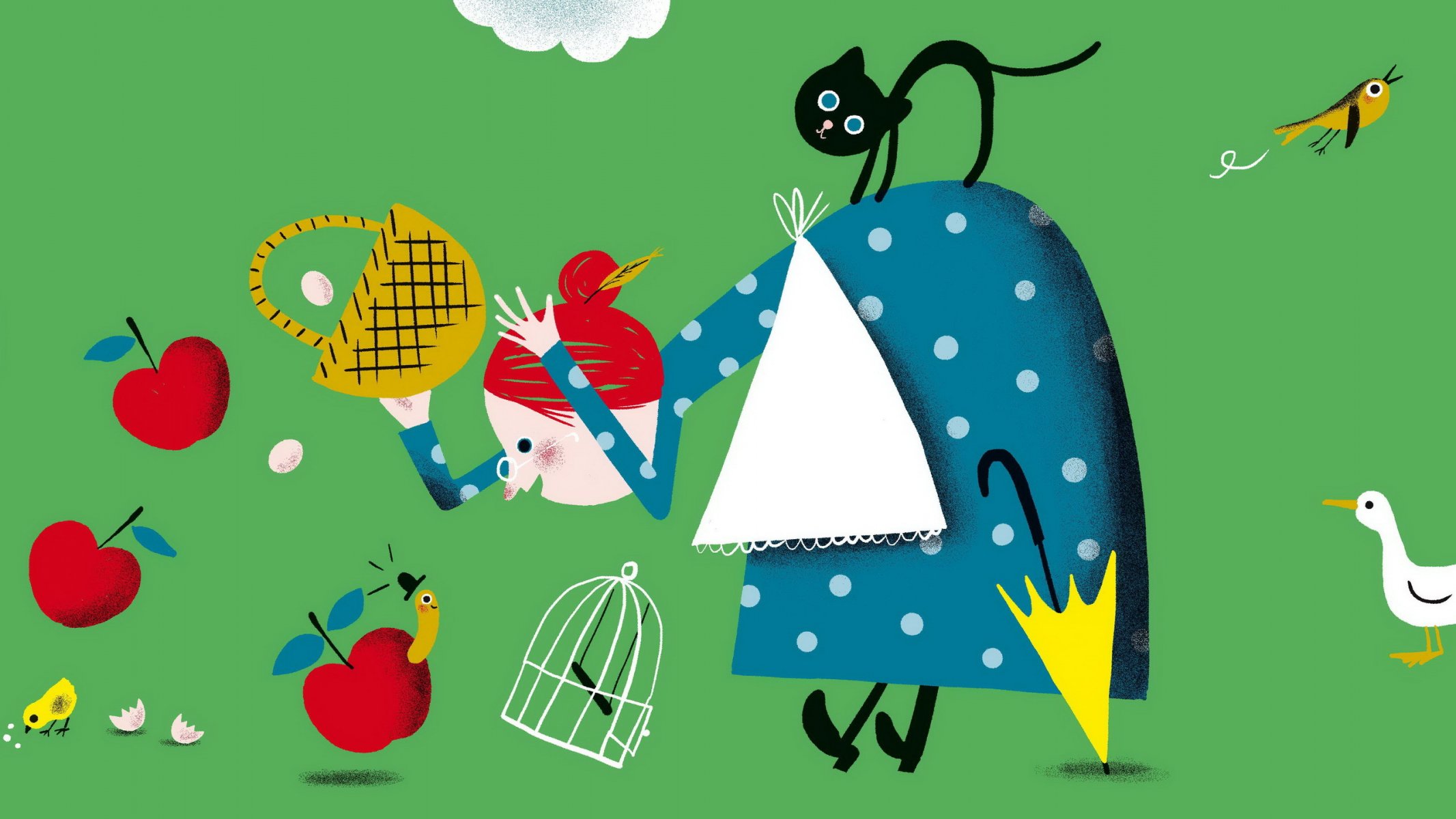 Kühe, die auf dem Gras liegen. Mädchen mit einem Krug