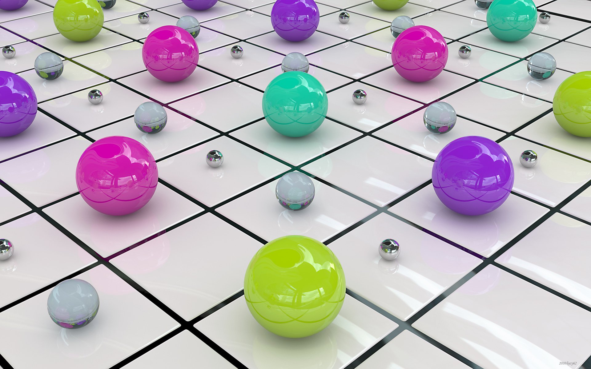 Volumetrische Kugeln mit Schachmuster in Behältern
