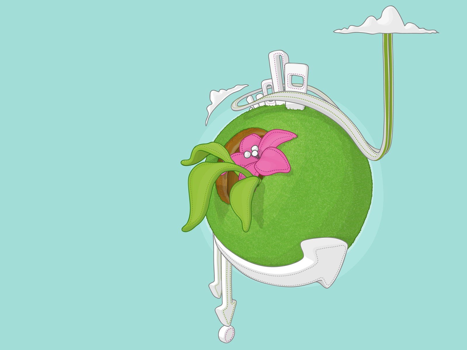 Baum auf einer magischen Kugel auf grünem Hintergrund