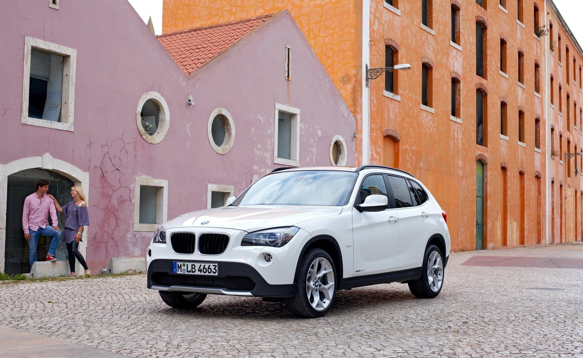 Ein weißer Boomer ist in einer Stadtstraße abgestellt