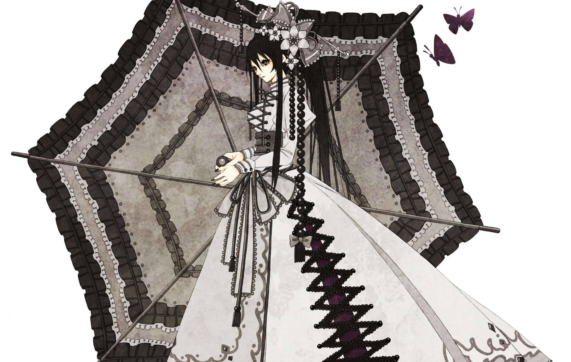 Asiatische Mädchen in einem stilvollen Outfit mit einem Regenschirm
