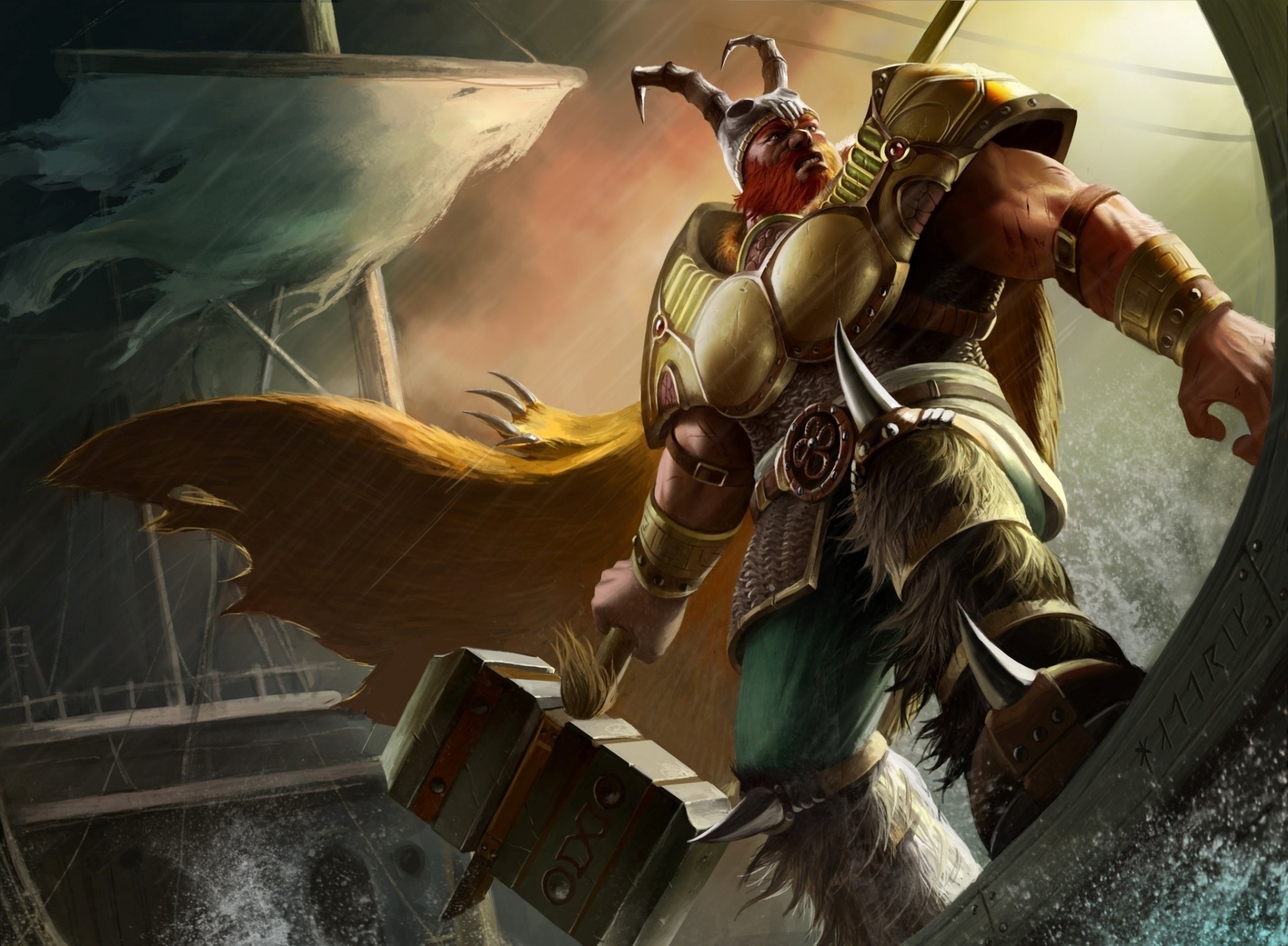 Ein Bogenschütze auf einem Tier. Steinmonster aus Lava