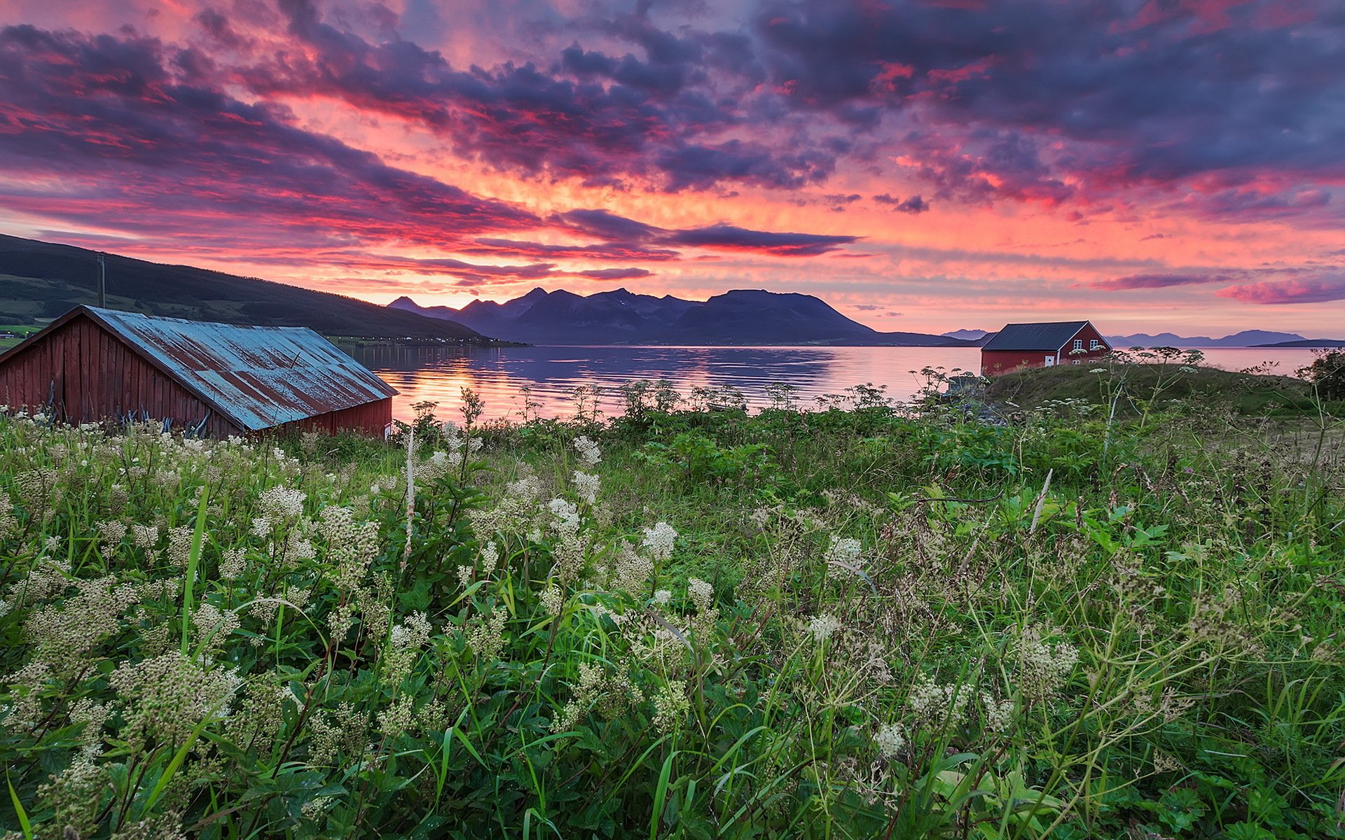 Eine einsame Blume schaut auf den Sommer Sonnenuntergang