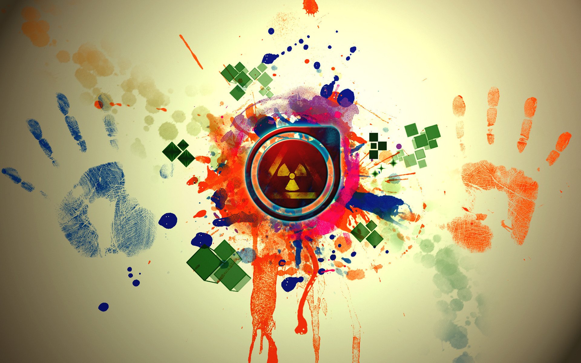 Orangefarbenes Strahlungszeichen, das auf Gefahren hinweist