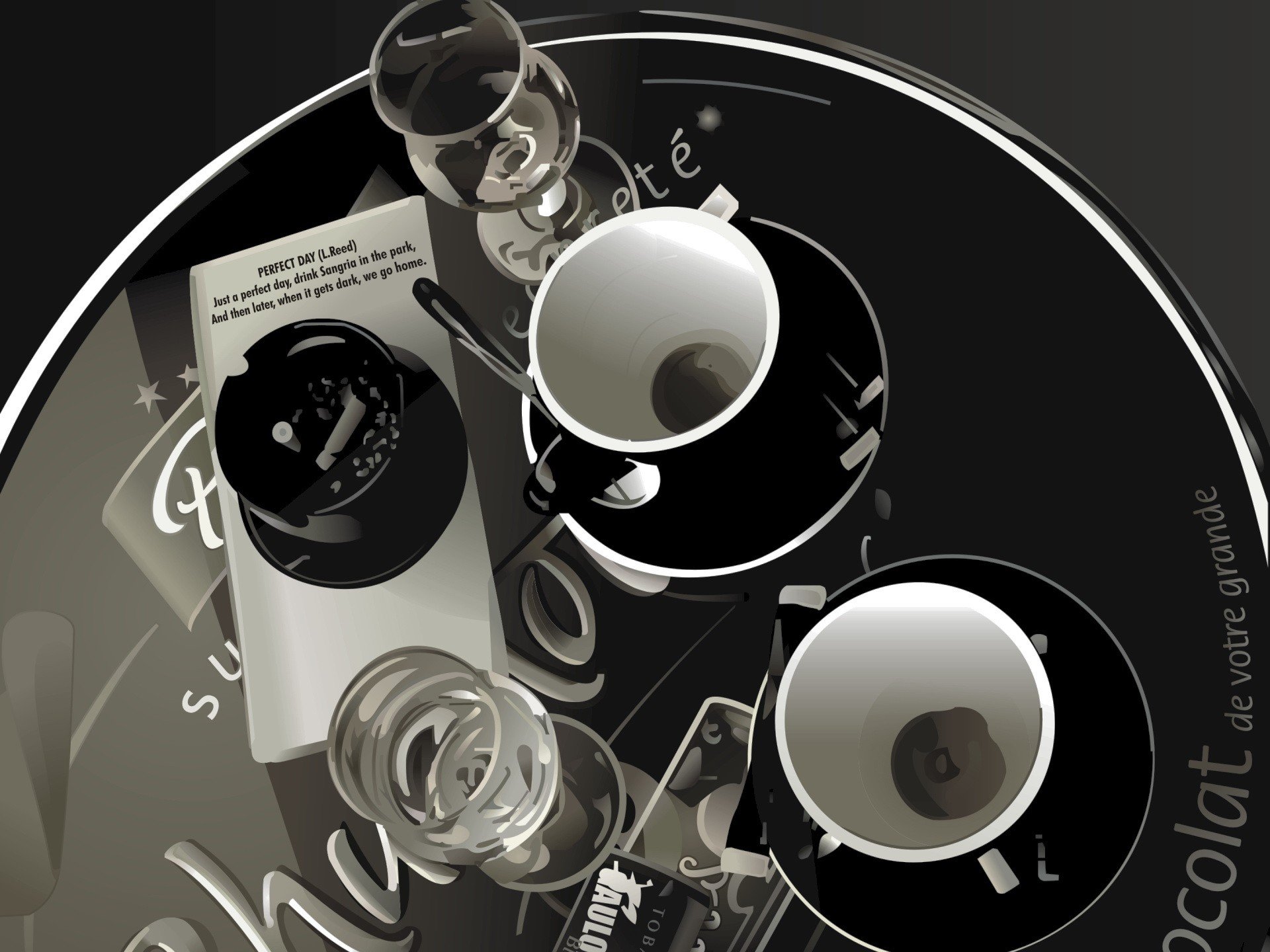 Ein Tisch mit Tassen. Reste von Kaffeesatz am Boden der Tasse