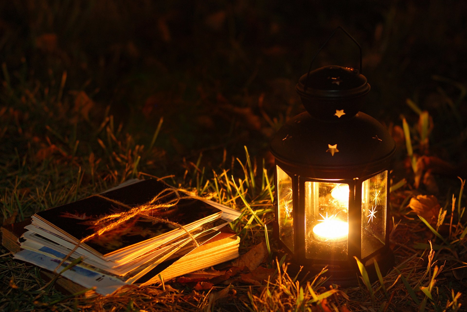 KERZE AUF DEM GRAS MIT BUCHSTABEN