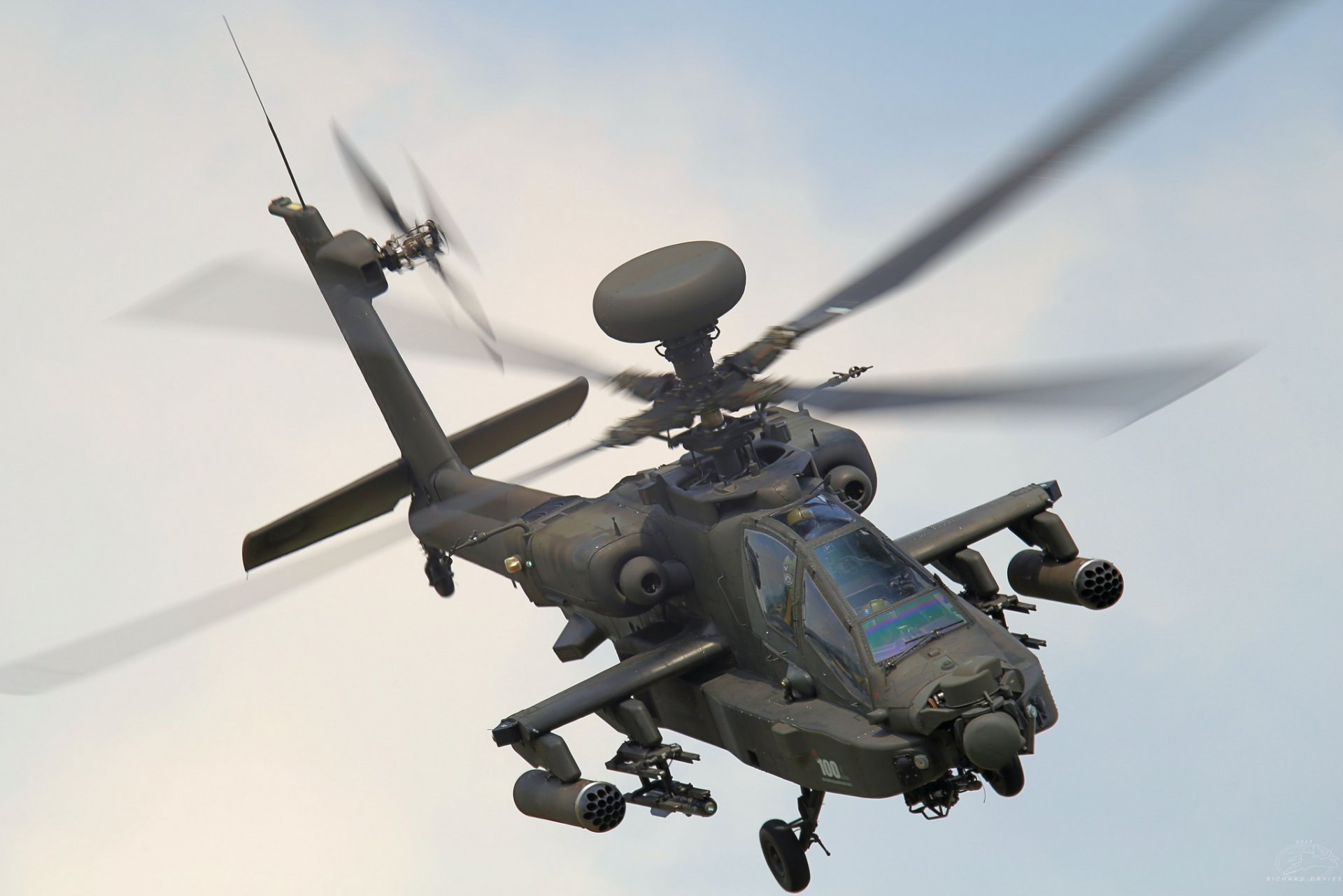Apache-Einschlagshubschrauber führt ein Manöver durch
