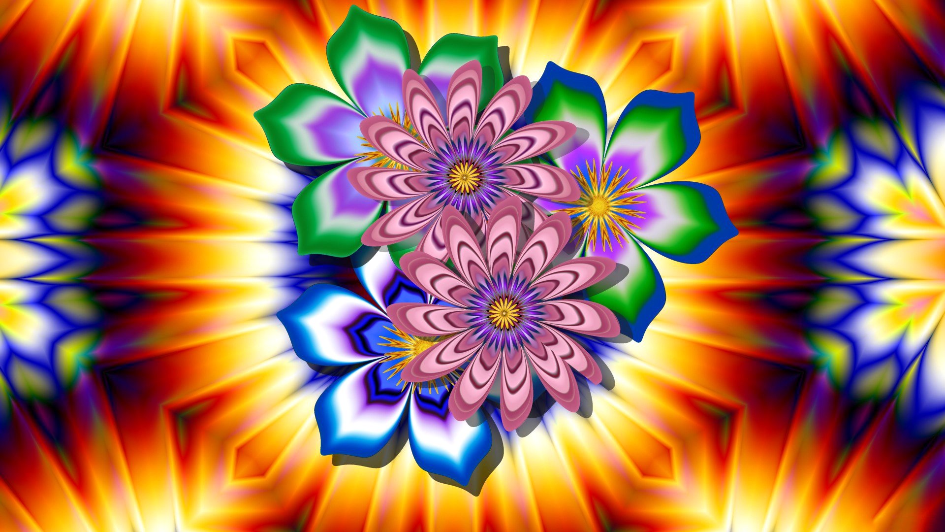 Blume mit fliegenden Blättern auf bewölktem Himmel Hintergrund