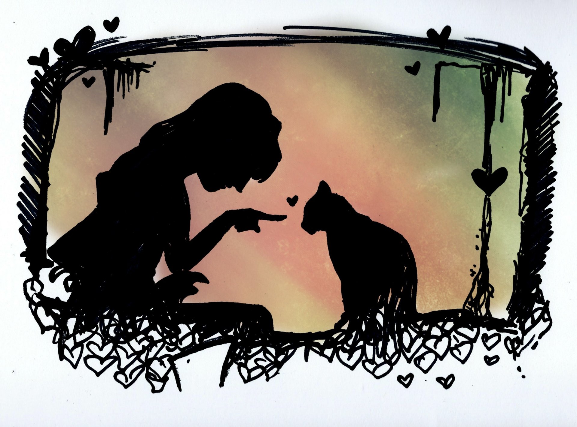 Gezeichnetes Bild eines Mädchens und einer Katze