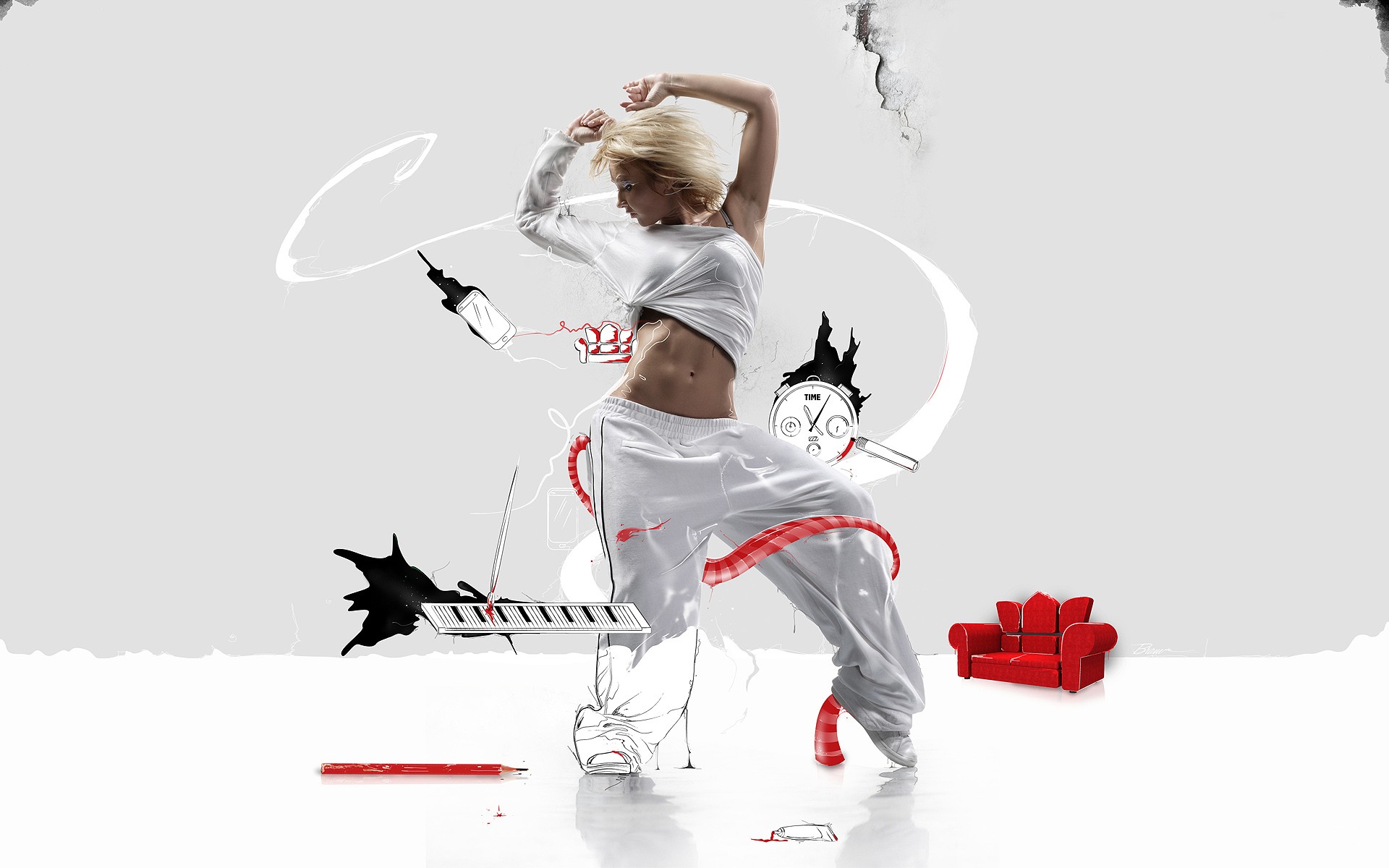 Mädchen-Tänzerin. Helles Foto. Fotoeffekte aus Photoshop