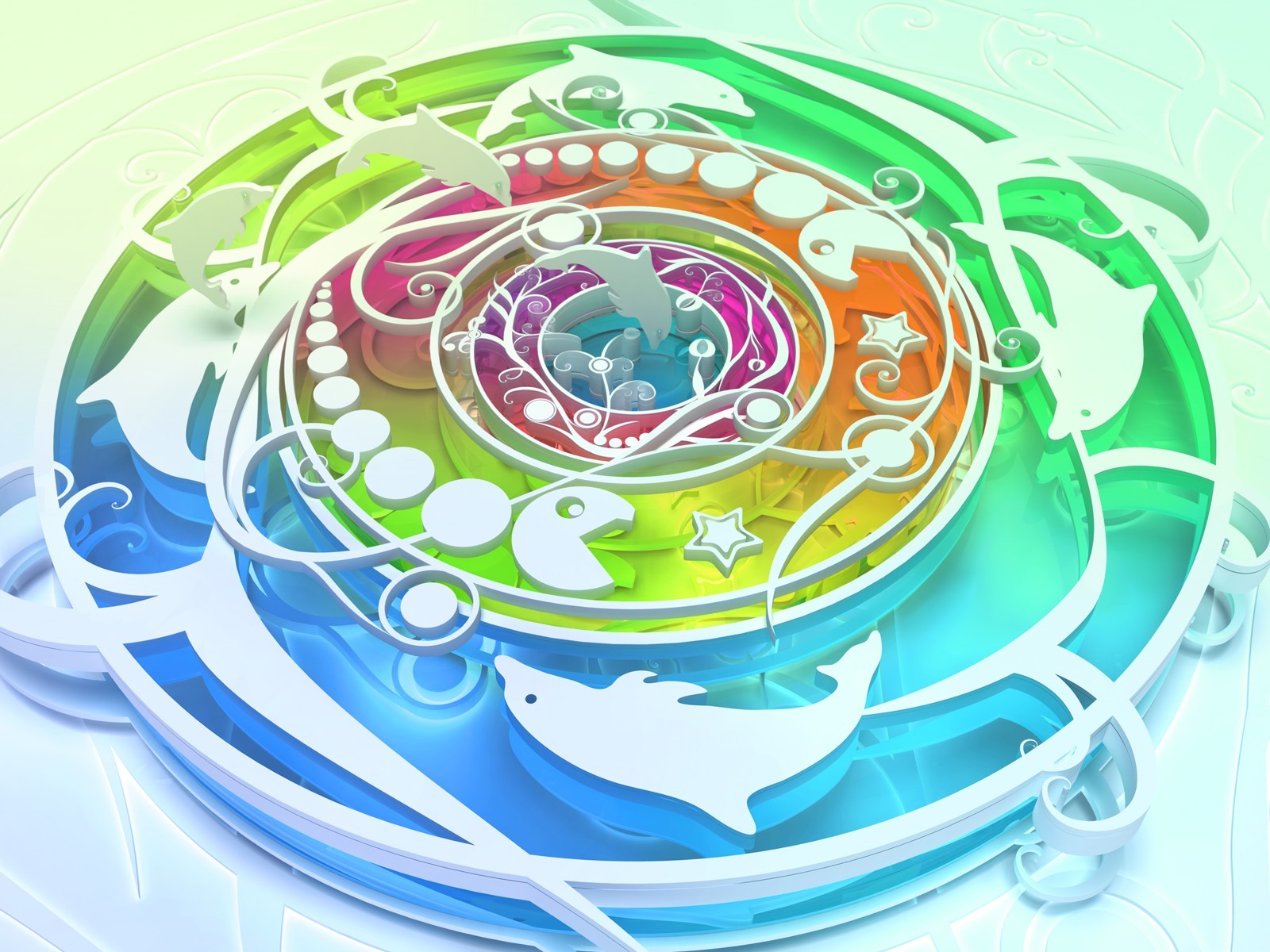 Kreisförmiges Muster aus Pixeln und Delfinen