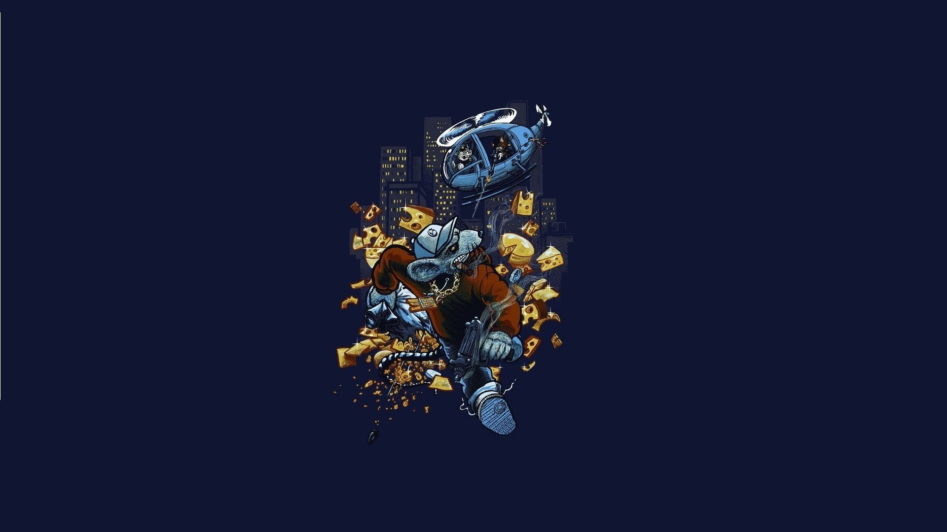 Ungewöhnliche Kunsthubschrauber und Maus im minimalistischen Stil